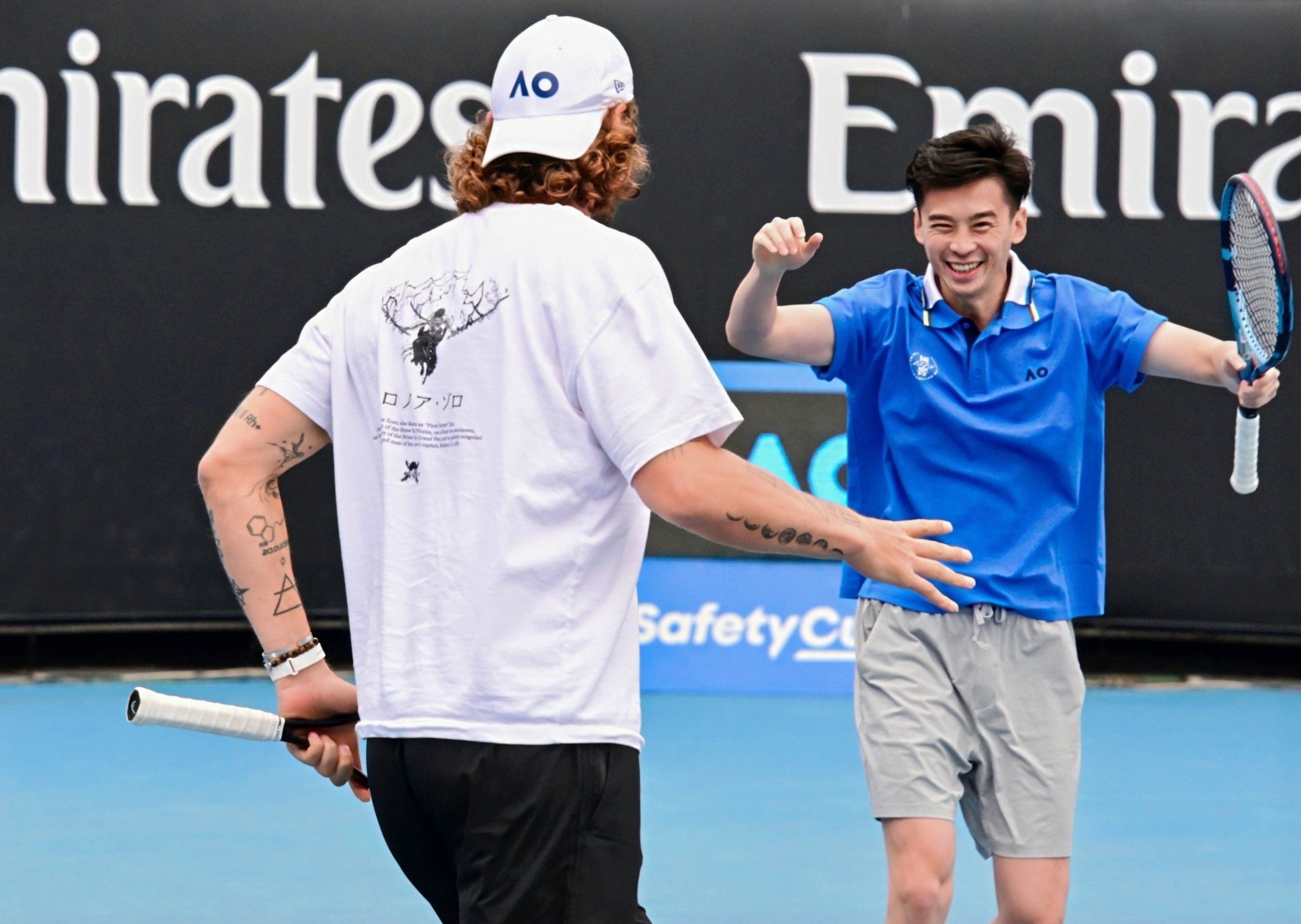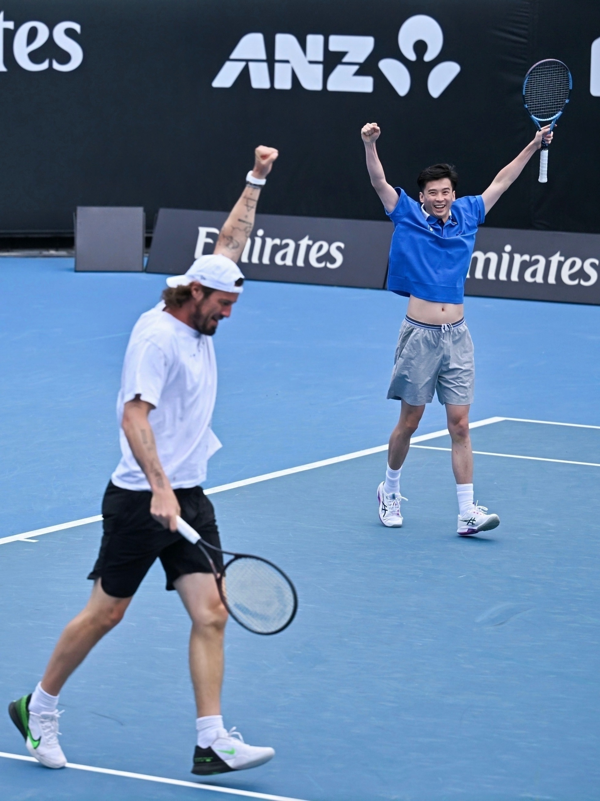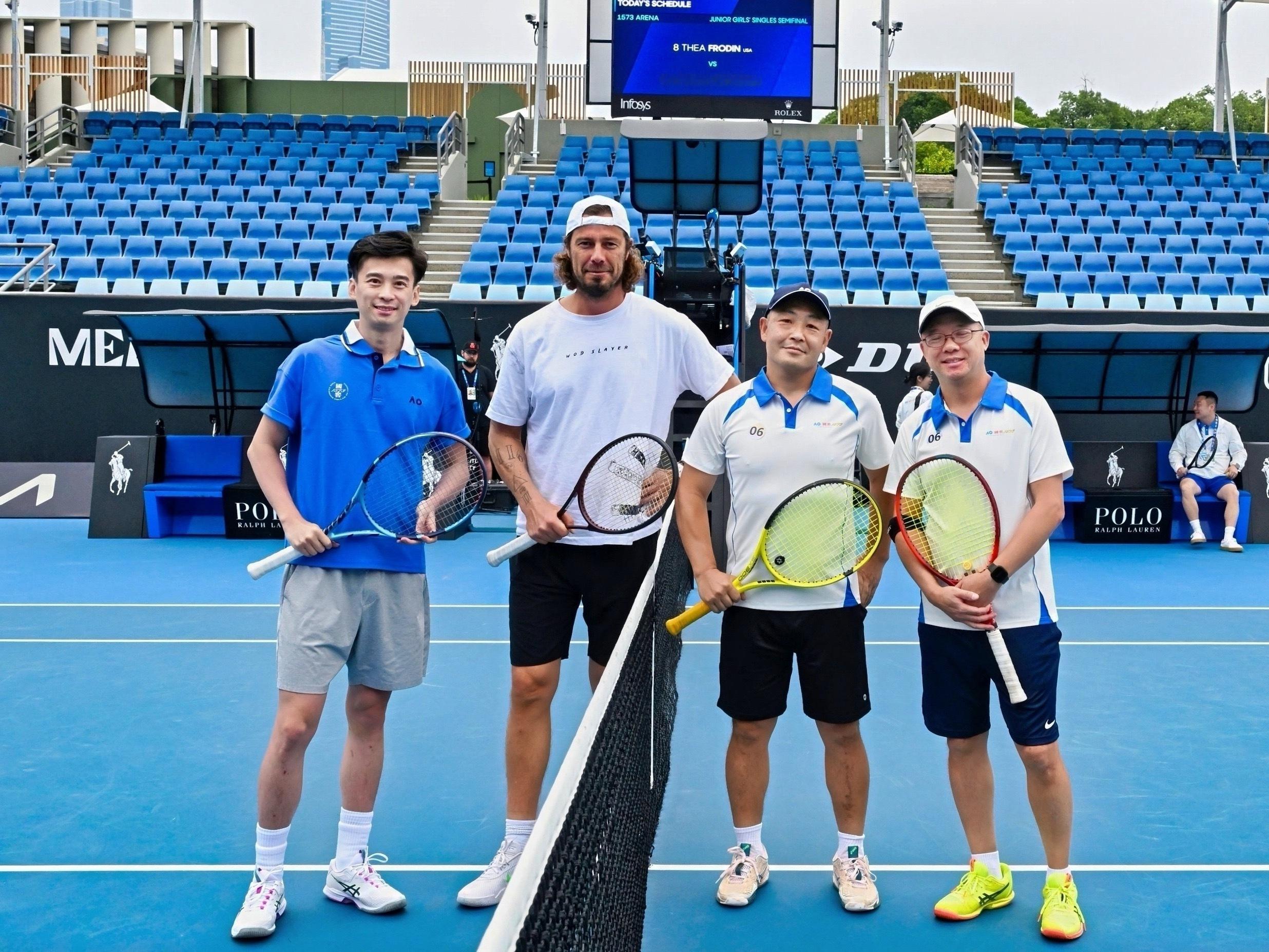 这次澳网2026 现场特种兵之旅,我圆了一个时隔七年的梦。2019年,国窖1573首次举办澳网中国业余挑战赛,我作为上海站亚军,本来要去澳网现场参加总决赛。后来因为众所周知的原因没能成行,但国窖和澳网的缘分,以及把中国业余高手们带到澳网的传统,都一直延续着。于是今年,我受邀作为开球嘉宾,终于能在1573球场打球了!而我的搭档则从付饶老师变成了。。。萨芬