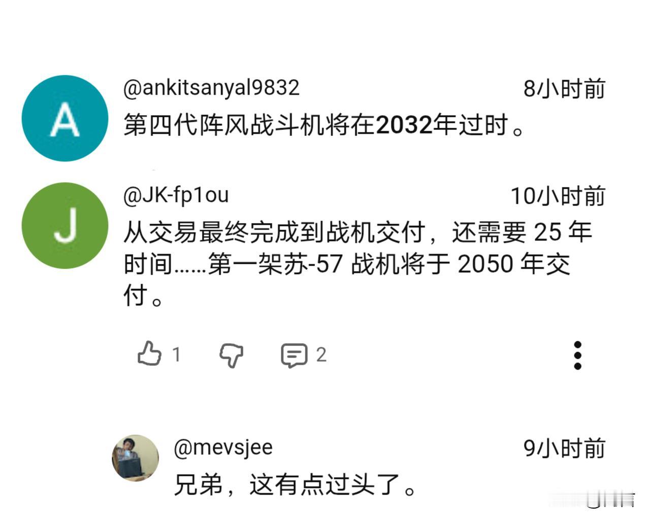 谈判进入最后阶段,印度或引进苏57战机。 1月31日,一位印博主援引印媒的消息表示,俄罗斯和印度关于引进苏57战机谈判已接近尾声,双方就技术转让及在印本土生产该型战机将达成一致。 此前,就不断有消息传出印度将引进苏57战机。而俄罗斯为了拿下军机订单可谓是诚意十足,不只是转让技术、还将协助其研发五代机等。 看见其他空军强国都装备了五代机,印度自然坐不住。虽然引进了法国阵风,可还是难以弥补技术上的代差,而苏57就成为了印度唯一的选择。消息传出,热议由此引发…