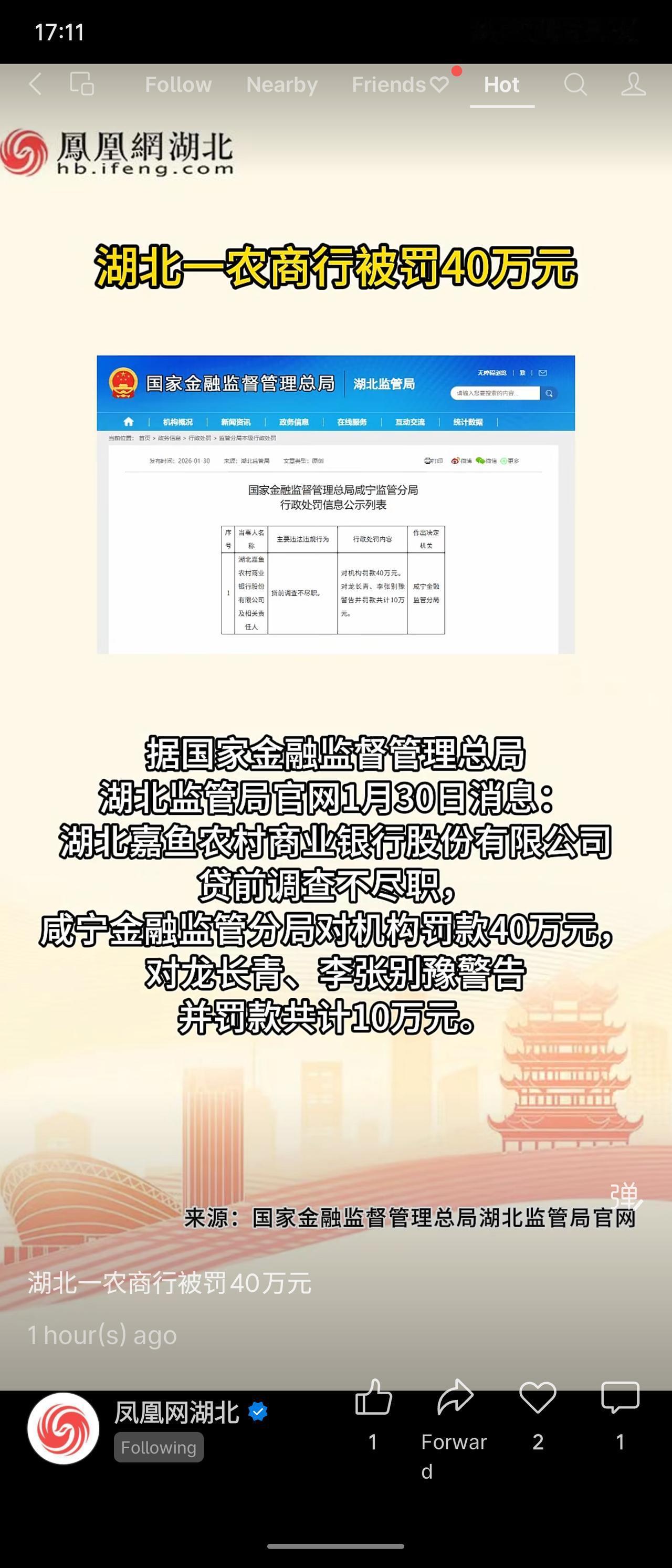 湖北嘉鱼农村商业银行因贷款调查不尽职,被国家金融监督管理总局威宁监管分局处以40万元罚款。该行政处罚决定于2020年1月30日公布。