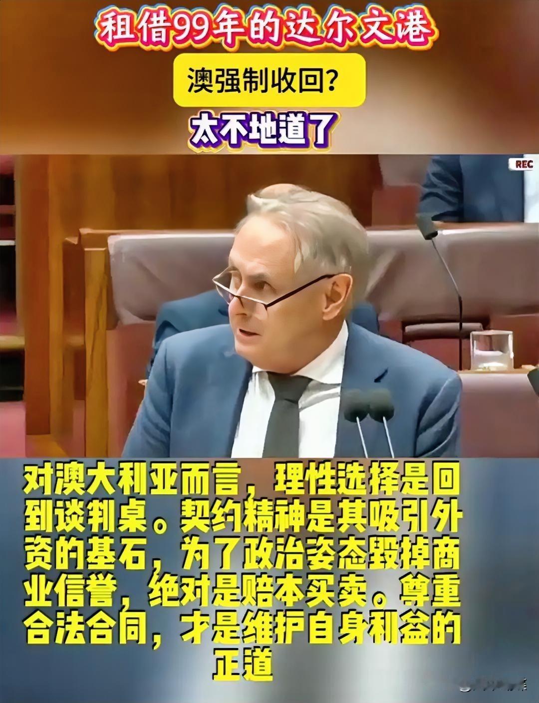 翻脸不认账! 中企投10亿盘活达尔文港盈利,澳方却要强行收回 澳大利亚当局扬言强行收回达尔文港,而该港口运营权已由中企岚桥集团通过公开竞标获得,2015年签订的99年租约目前仍未到期。 中方明确反对这一无理举动,要求澳方拿出合法收回的充分依据,强调此举严重违背契约精神。 中企运营十年间投入超10亿澳元升级,让港口从亏损转为年盈利960万澳元,还创造大量本地就业,澳方2023年审查已认定无安全风险。 堪培拉方面却以“港口属战略要地”为由主张收回,背后受美澳军事合作及国内政治推动。 中方回应指出,澳方单边毁约将面临巨额赔偿,还会冲击自身国际投资信誉,目前双方围绕合同效力、国家主权争议不休,后续走向待进一步交涉。 网友热评:“中企投钱盘活港口,盈利了就想抢回去,这哪是讲主权,分明是毁契约!” 你觉得澳方最终会强行收回达尔文港吗?中企该如何维护自身合法权益?来评论区聊聊~