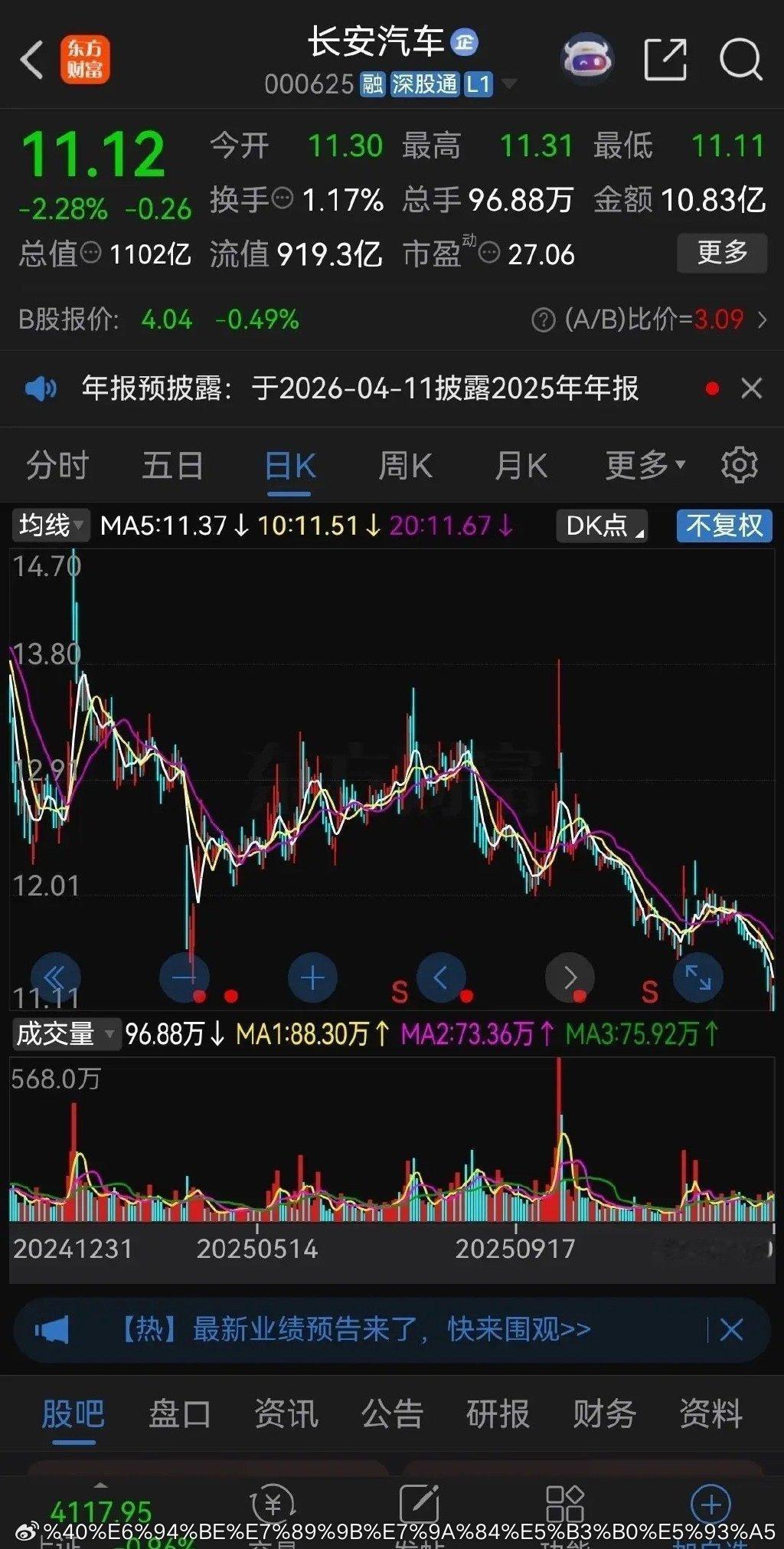 2024年2月份的时候,长安汽车和江淮汽车股价都在13块钱左右。如今快两年过去了,长安汽车周五股价收盘只有11.12元,比2024年2月份的股价还跌了十几个点。这个价格比大盘2600多点时还要低,至少落后大盘1500点。