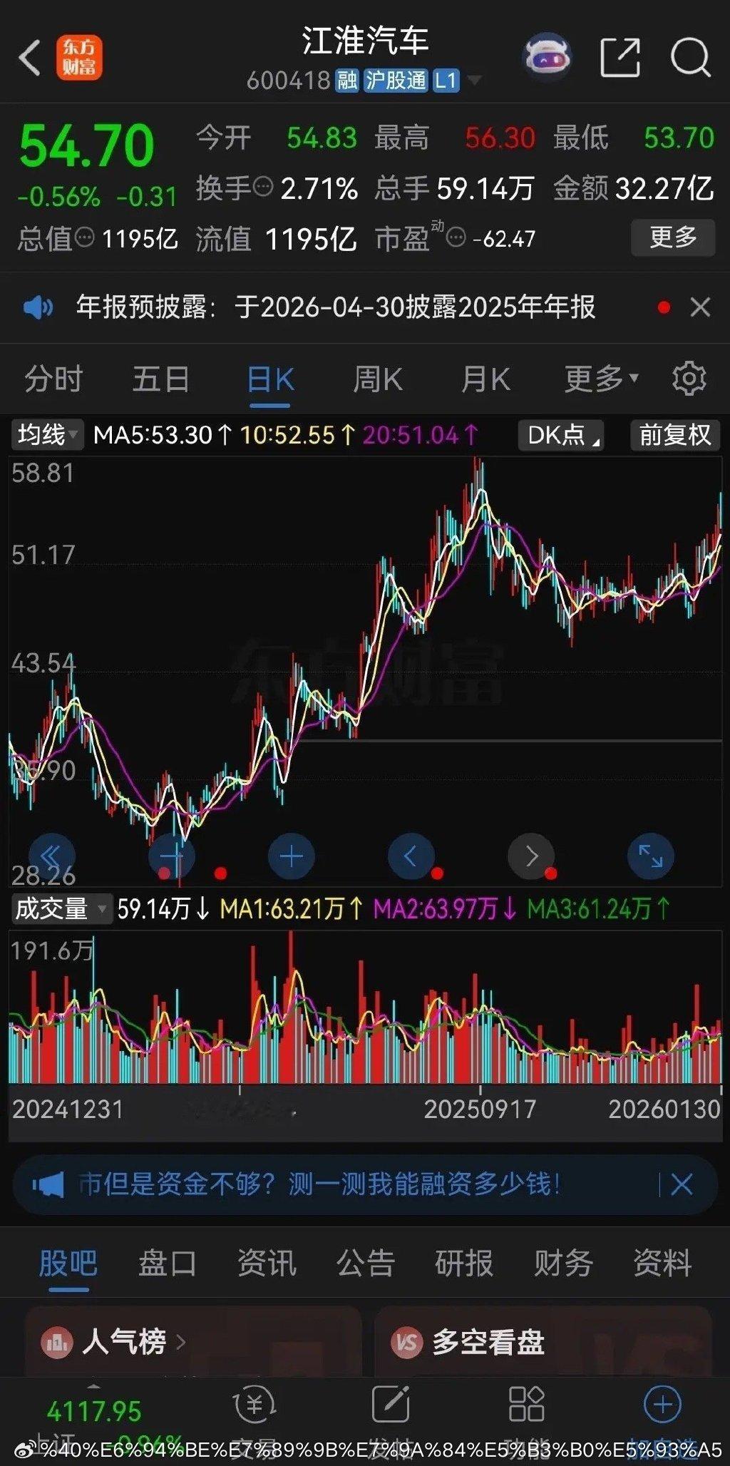 而江淮汽车周五收盘股价报收于54.70元,已经较2024年2月份的股价上涨了4倍多,当时和长安汽车一样的价格,现在已经甩它几条街了。
