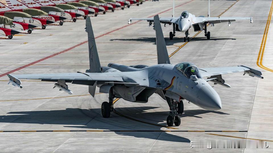 J15T的三翼面布局 15T的三翼面布局绝非简单加个鸭翼,前翼能让升力系数斜率大幅提升,中低速时抓力更强,滑跃起飞时短跑道就能离舰,着舰时还能当减速板缩短距离,轻拉杆时抬头角度比常规侧卫多10度左右,中低空机动性和大迎角操控性都更优。 取舍也很明显,多了对前翼重了一吨,同发动机下推重比下降,超音速时阻力大、费油,巡航效率不及常规布局,可就像F35C放大机翼、F18用平直翼的选择,舰载机本就需要为起降性能让步。 从早期吸收T-10K经验强化低空操作,到如今全动鸭翼优化机头攻角响应,机翼折叠点外移突破载重瓶颈,还适配了电弹与滑跃双重场景。 搭配国产涡扇发动机和先进雷达后,保留了重型舰载的火力优势,成为全球现役唯一兼顾多场景作战的重型舰载机。