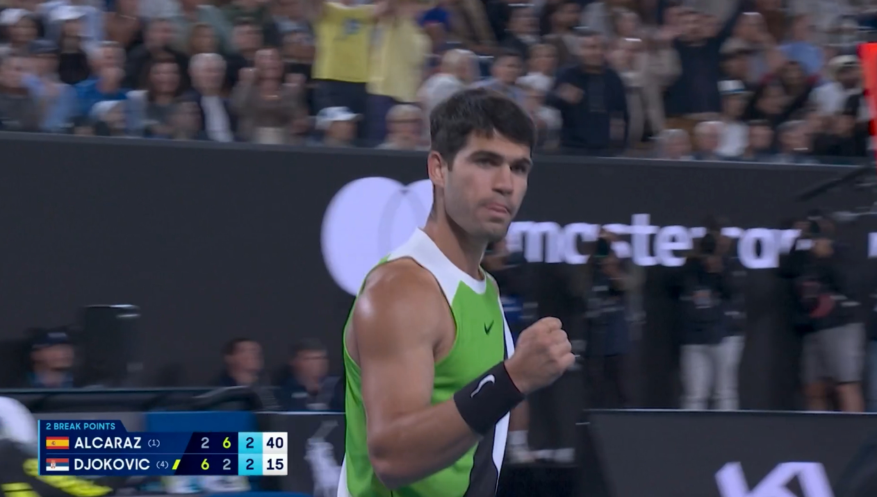 德约科维奇vs阿尔卡拉斯阿卡第三盘率先破发,3-2领先。德约科维奇阿尔卡拉斯澳