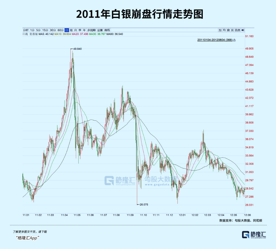 2011年4月29日,银价触及49.83美元高点后,首次出现单日5%的回调,引发部分恐慌性抛售。