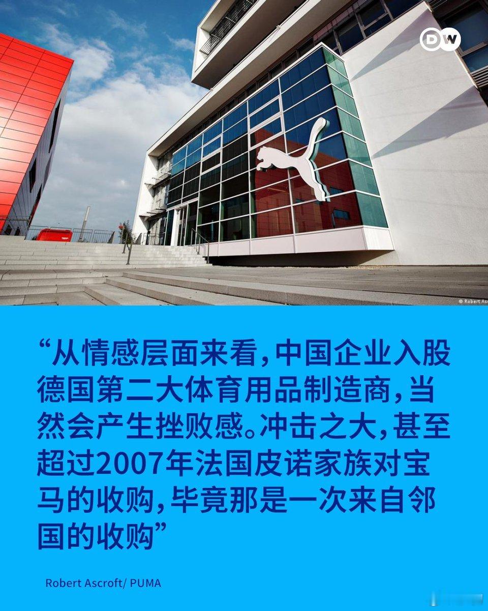 德国《法兰克福》报:中国体育用品集团“安踏体育”计划斥资15亿欧元,收购著名德国体育品牌“彪马”29%的股权。“从情感层面来看,中国企业入股德国第二大体育用品制造商,当然会产生挫败感。冲击之大,甚至超过2007年法国皮诺家族对宝马的收购,毕竟那是一次来自邻国的收购”。怎么,比监听德国总理和北溪二号被炸对德国人的冲击还大吗???