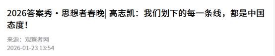 所言极是!2026年1月23日,高志凯:我们画下的每一条线,都是中国态度!曾公开表示,一定要改变南海的被动局势,不能让上不了台面的国家,在我们头上拉屎拉尿! 高志凯教授在一些国际问题中,有着非常独特的见解。就在过去一年的时间里,高志凯就画出了三条线,直接打开了我国在国际舆论场上的话语空间。 这三条线是“高志凯恒河线”,“菲律宾东经118度线”,“日本北纬30度线”。分别对应的国际争端是中印边界问题,中菲南海问题,中日领土争议。 就在2026年1月23日的时候,据媒体报道,高志凯教授就公开表示,过去画下的每一条线,都是中国的态度。高志凯教授对待这些国际争端有着不同的看法,而他的看这些看法对我国来说,都发挥着重要的作用。 高志凯教授除了划线之外,他的一些言论更是非常的直白。此前高志凯教授在一次演讲中就明确表示,一定要改变南海的被动局势,绝对不能够让菲律宾这种小国弱国上不了台面的国家,在我们的头上拉屎拉尿。 在国际争端问题上,我国更倾向于采用温和的态度去解决。但是高志凯教授很多时候并不这样认为,去年的时候,高志凯教授就明确表示,要做到对菲律宾知己知彼,要牵着菲律宾的鼻子走,而不是被菲律宾牵着我们的鼻子走。 通过高志凯教授的一些言论,就可以得出高志凯教授更倾向于采取快准狠的措施,解决国际争端。 对此,您怎么看?欢迎评论区留言您的看法,我们一起讨论一下。 (信息来源:高志凯:我为什么必须当面向菲律宾强调“高志凯东经118度线”?-观察者网) (信息来源:2026答案秀·思想者春晚| 高志凯:我们划下的每一条线,都是中国态度!-观察者网)