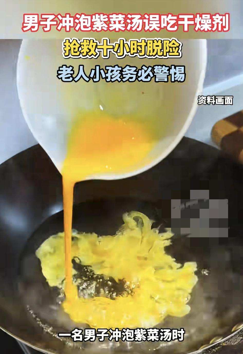杭州萧山一男子在冲泡紫菜汤时误把干燥制当做调料包食用,导致呕到严重灼伤。幸亏是及时就医抢救10个小时转危为安。同时也提醒大家在使用紫菜汤的时候一定要分清调料包和干燥剂,这跟普通的泡面有所不一样,泡面没有含有干燥剂,而且拆开这种食品的时候,一定要第一时间把干燥剂扔掉,特别是家里有老人和小孩子一定要多多提醒。