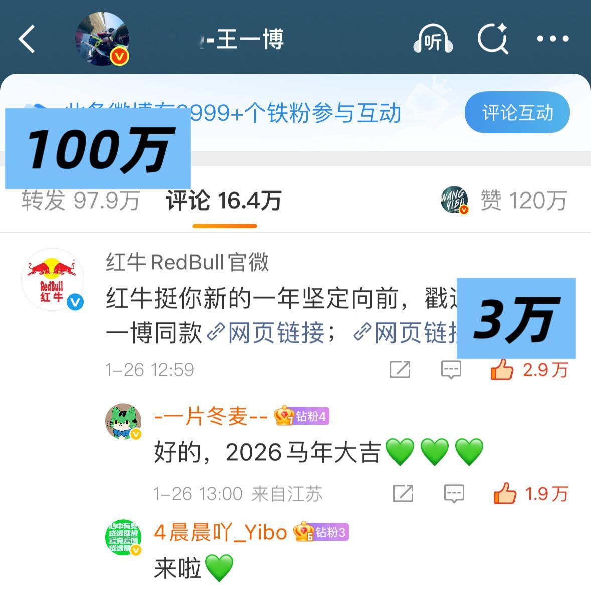 1️⃣一博飞科官宣博网页链接【👍800万】2️⃣王一博红牛网页链接【前排3万,转百万】3️⃣王一博纯甄网页链接【前排3万,点百万,转百万】