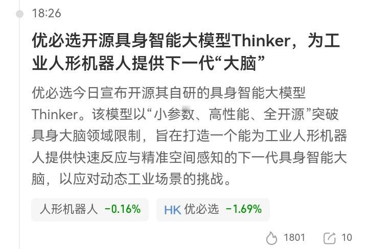优必选放大招了,开源具身智能大模型Thinker,专为工业人形机器人量身定制。从战略层面考虑,免费开源是必须的。因为国外像英伟达,特斯拉和Open AI等科技公司,都有能力开发适配机器人的人工智能大模型。越早开源,越能更快的抢占市场,而且还能在用户的反馈中,不断的技术迭代和升级。 从出货量看,国内机器人厂商智元宇树优必选,占据前三席位。目前看可以说是遥遥领先。但别忘了,还有特斯拉。 马斯克的一贯风格,不鸣则已一鸣惊人。Optimus已在奥斯汀工厂训练,凭借造车造火箭的技术积累,人形机器人难不倒。 竞争十分激烈呀!