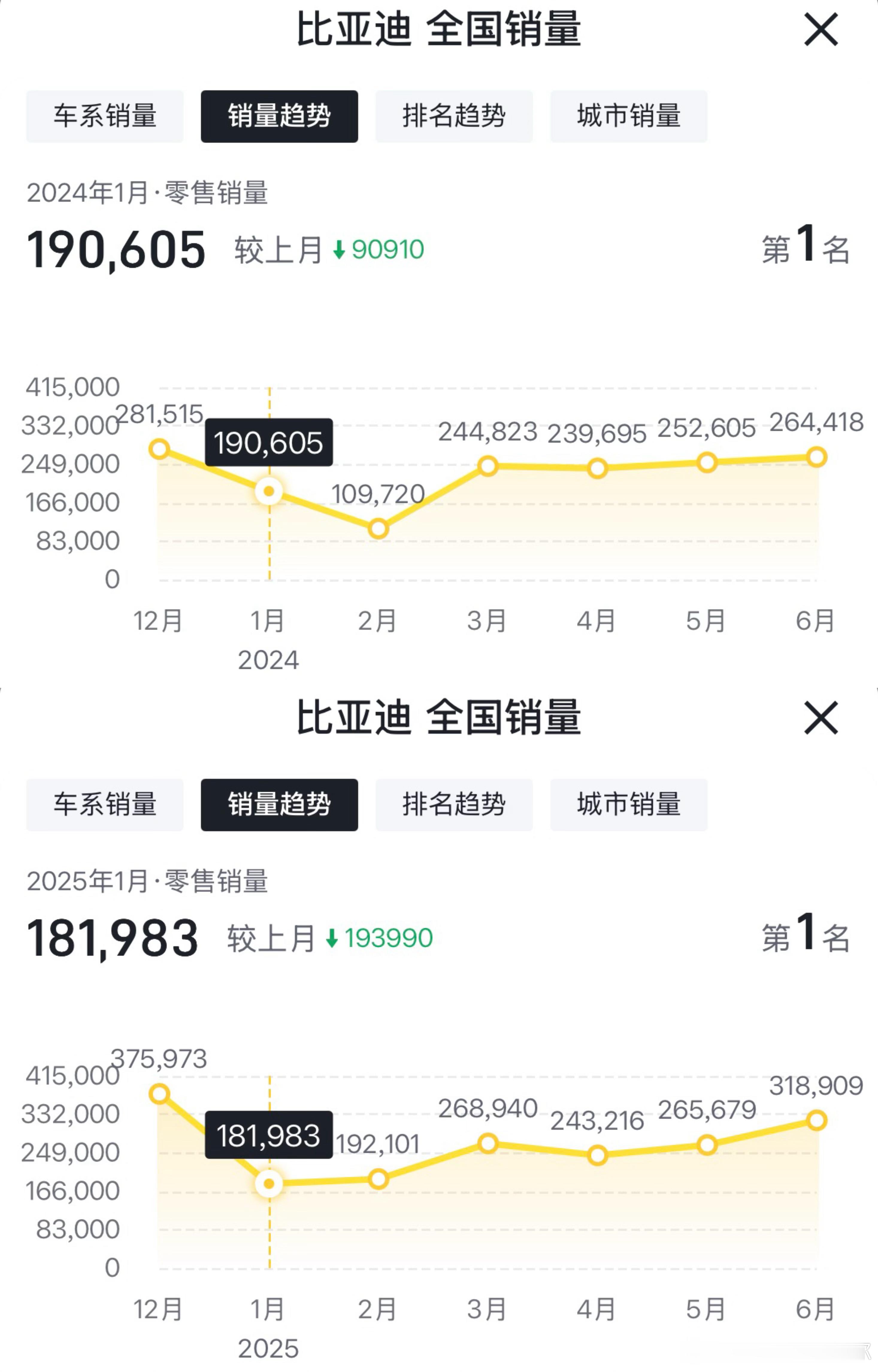 当然这也符合过去几年的情况,吉利普遍在1月份有销量的尖峰,而比亚迪在1-2月是明显的谷底