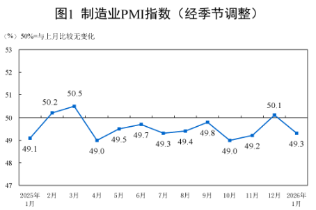 -统计局:2026年1月份中国制造业采购经理指数为49.3%,比上月下降0.8个百分点