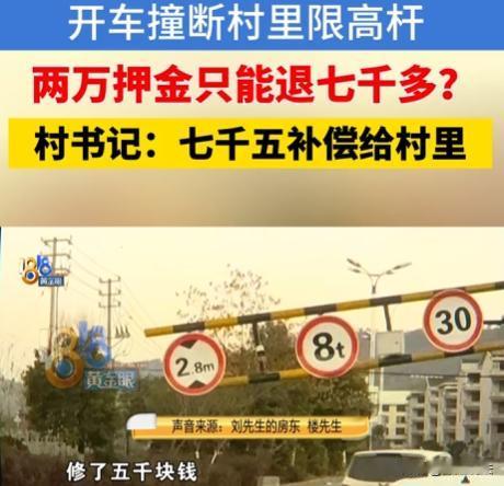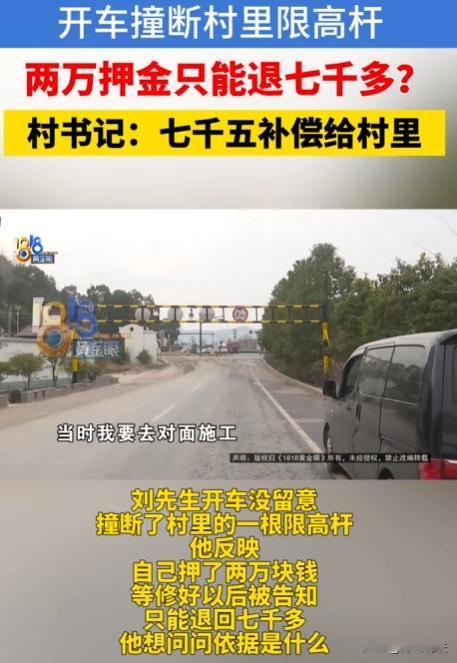 浙江金华,一男子驾驶载有挖掘机的平板车,途经某村时不慎撞坏限高杆。村里索要2万元押金,承诺修好后退还剩余,可限高杆修好后,村里却要扣除5000元维修费与7500元补偿费,男子认为补偿费无依据,找媒体曝光,村书记称新东西被撞坏,修好就想不出钱不正常,还撂下狠话让男子走法律程序。 1月15日天还没大亮,才六点半,刘先生开着平板车,车上还载着挖掘机,打算去金华东阳雅溪村对面干点活,这路他平时走得少,加上早上光线暗,根本没留意到路上有限高杆。 等他反应过来的时候,已经晚了,平板车连着挖掘机撞上了限高杆,这平板车加上挖掘机,高度差不多有3米,可限高杆限高才2米8,这一撞,限高杆直接被撞坏了。 刘先生当时有点慌,就拍了张照片,给相关的人汇报了一下,也没想着报警,更没联系村里的人,开着车就走了。 可他这一走,村民发现限高杆被撞坏,就报了警,没多久民警就找到了刘先生。 这时,刘先生的房东站了出来,帮忙跟村里协商这事,一开始村里要3万块钱押金,房东在中间来回说和,最后押金降到了2万。 村里跟刘先生说,先把这2万押金交了,等限高杆修好了,要是还有剩余的钱,就退给他,刘先生也没别的办法,只好交了这2万块钱。 村里拿到钱后,很快就找人把限高杆修好了,可等修好了,村里跟刘先生算账的时候,问题就来了。 村里说,修这限高杆花了5000块钱维修费,这钱得从押金里扣,刘先生觉得这倒也合理,毕竟是自己撞坏的,修的钱该出。 可村里又说,还得扣7500块钱补偿费,刘先生一听就懵了,这补偿费是啥钱?他问村里要个说法,村里也没说出个所以然来,就说这是村里研究决定的。 刘先生肯定不乐意啊,自己撞坏限高杆,修的钱该给,可这没来由的补偿费,凭啥要自己出?他跟村里理论了好几次,可村里就是要扣这7500块钱。 刘先生没办法,觉得自己有理却没人听,只好找媒体来帮忙,他跟记者说,自己撞坏限高杆是不对,也愿意承担维修的费用,可这补偿费根本就没有依据,村里不能想扣就扣。 记者跟着刘先生来到了村里,找到了村里的支书。村支书一看到记者,脸色就不太好,他说,这事是村里开会研究过的,大家一致决定要扣这补偿费。 村书记还指责刘先生,撞坏了限高杆,不报警也不联系村里,直接就走了,这算怎么回事?现在修好了限高杆,就想一分钱不出,哪有这么好的事啊。 村书记越说越激动,最后直接撂下狠话,让刘先生别在这纠缠了,要走法律程序,法院说怎么判就怎么办。 刘先生听了村支书的话,他说,自己当时确实有点慌,没处理好这件事,可村里也不能这么不讲道理,自己又不是不承担责任,维修费自己认了,可这补偿费,自己肯定不会轻易给的。 刘先生跟记者说,他本来还想跟村里好好协商,看看能不能把这事和平解决,可现在看来,村里态度这么强硬,协商估计是没戏了。 他打算先再跟村里沟通沟通,要是实在不行,就走法律途径维权,他相信,法律是公正的,肯定会给自己一个合理的说法。 那么,从法律角度来看,村里扣除的这7500元补偿费到底有没有依据呢? 根据民法典相关规定,行为人因过错侵害他人民事权益造成损害的,应当承担侵权责任。 刘先生驾驶车辆撞坏限高杆,确实存在过错,应该承担相应的赔偿责任。 但是,赔偿责任的范围应该是有限的,一般来说,赔偿责任应该以实际损失为限。 也就是说,刘先生只需要承担维修限高杆的费用,也就是那5000元。 而村里扣除的7500元补偿费,并没有明确的法律依据,村里不能仅仅因为限高杆被撞坏,就随意要求刘先生支付额外的补偿费用。 除非村里能够证明,除了维修费用外,还存在其他实际损失,并且这些损失与刘先生的撞杆行为有直接的因果关系。 村里并没有提供任何证据证明存在其他实际损失,因此村里扣除的这7500元补偿费,缺乏法律依据,刘先生有权拒绝支付。 如果刘先生选择通过法律途径来解决这件事,他可以提起诉讼,要求村里退还多扣除的7500元押金。 在诉讼过程中,刘先生需要提供相关证据,证明自己只需要承担维修费用,而不需要支付额外的补偿费用。 这事,也有村民说,村里要这补偿费有点不合理,维修费刘先生出就行了,这补偿费没有明确的依据,村里不能随便要,要是都这样,以后谁不小心碰坏了村里的东西,都得被讹一笔,那还了得。 刘先生的朋友知道了这件事,给他出主意说,让他再找几个中间人,跟村里好好说说,说不定能把这事解决了,没必要走到打官司那一步。 刘先生心里知道,这件事处理起来可能会有点麻烦,但他不怕,他相信,只要自己占着理,就一定能讨回一个公道。 现在,刘先生还在等着村里的回复,他也做好了走法律程序的准备,他希望,这件事能尽快得到解决,自己也能早日拿回属于自己的押金。 对此,大家都怎么看呢?