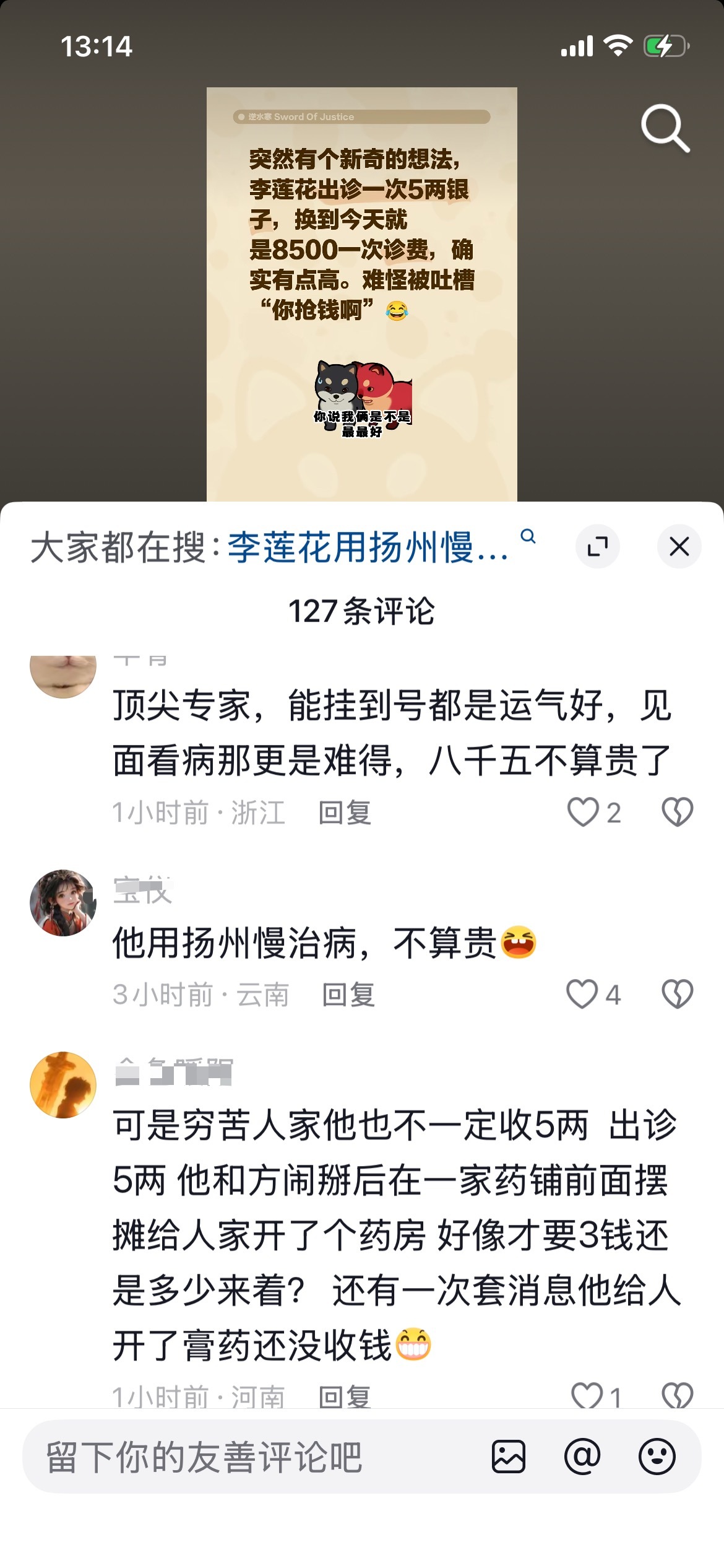 李莲花看病一次5两银子,一次性看好,只挣该挣的钱,一点也不贵!!