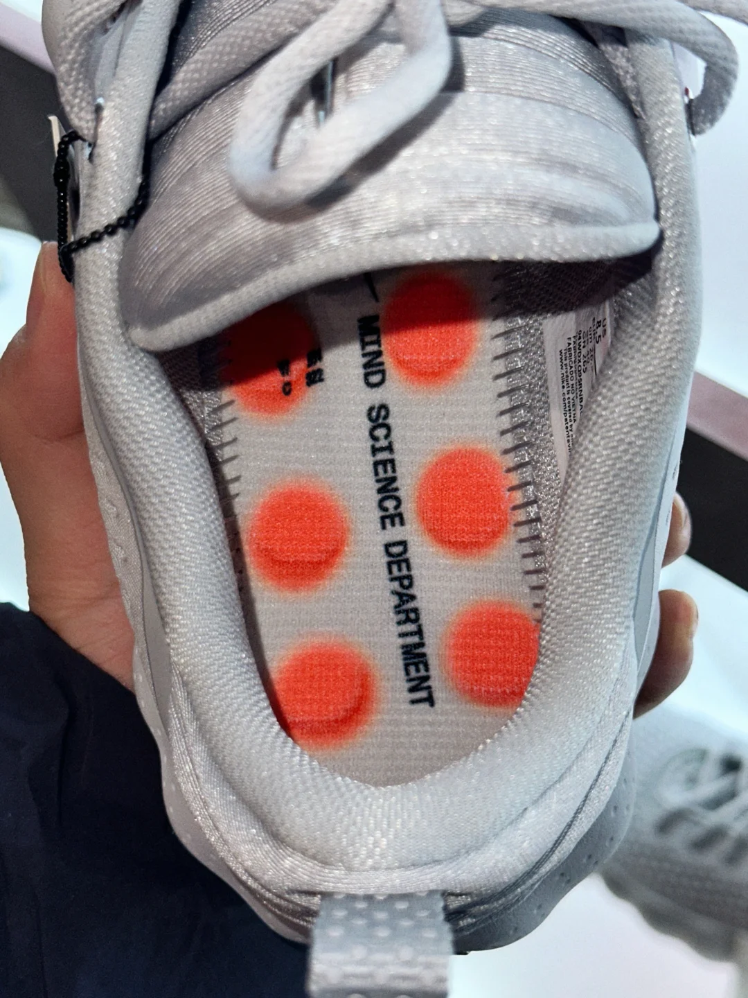 终于体验了下传说中的 Nike Mind 系列,的确很有意思。002 的体感会更明显也更有趣,踩起来跟踩气泡纸似的,有“爆珠”的感觉,很奇妙。更火的 001 反倒没 002 感受那么强烈,但外形的确帅!在店里还可以做个专注度测试,戴上神经网络的头箍整的挺玄乎,推荐大家玩玩。
