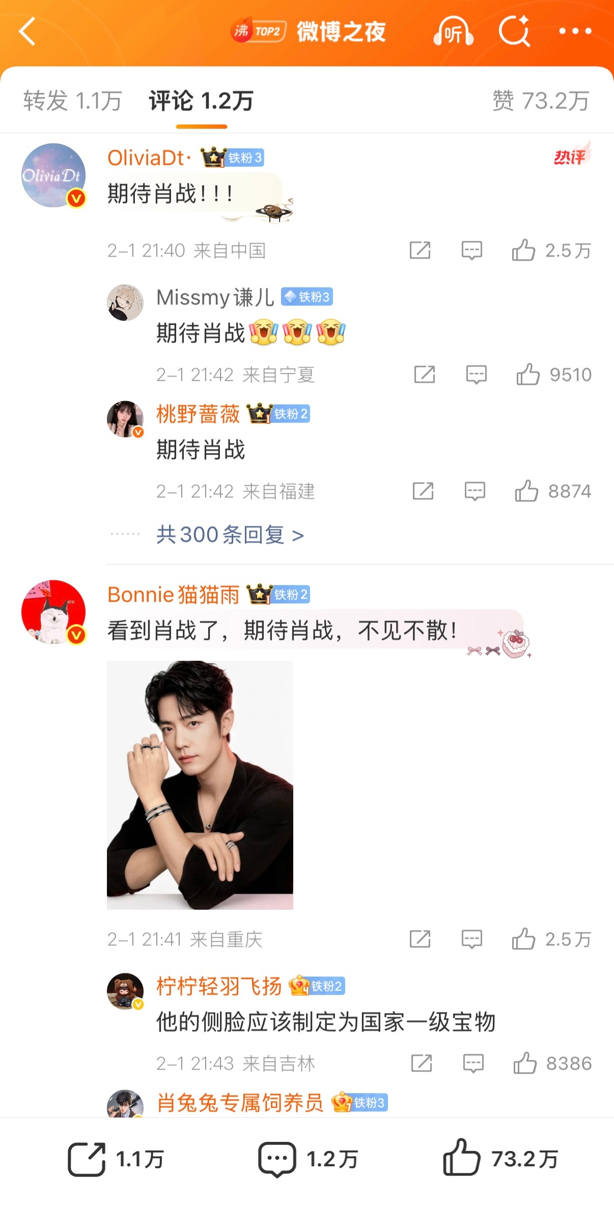 肖战 微博之夜第七波阵容 微博之夜第7波官宣,肖战一个小时点赞破110万,热一点