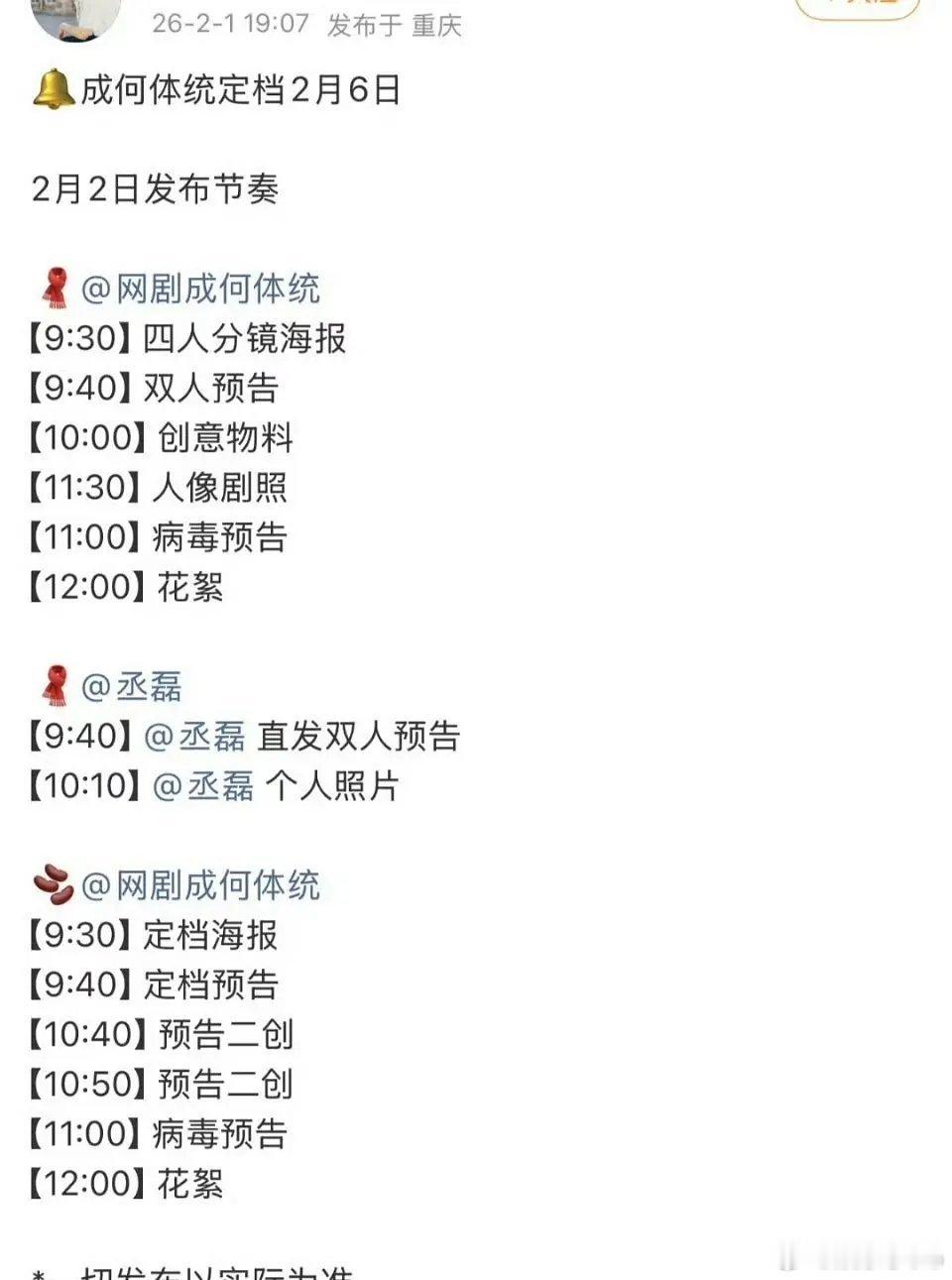 王楚然丞磊成何体统定档节奏,明天官宣定档2月6号播出