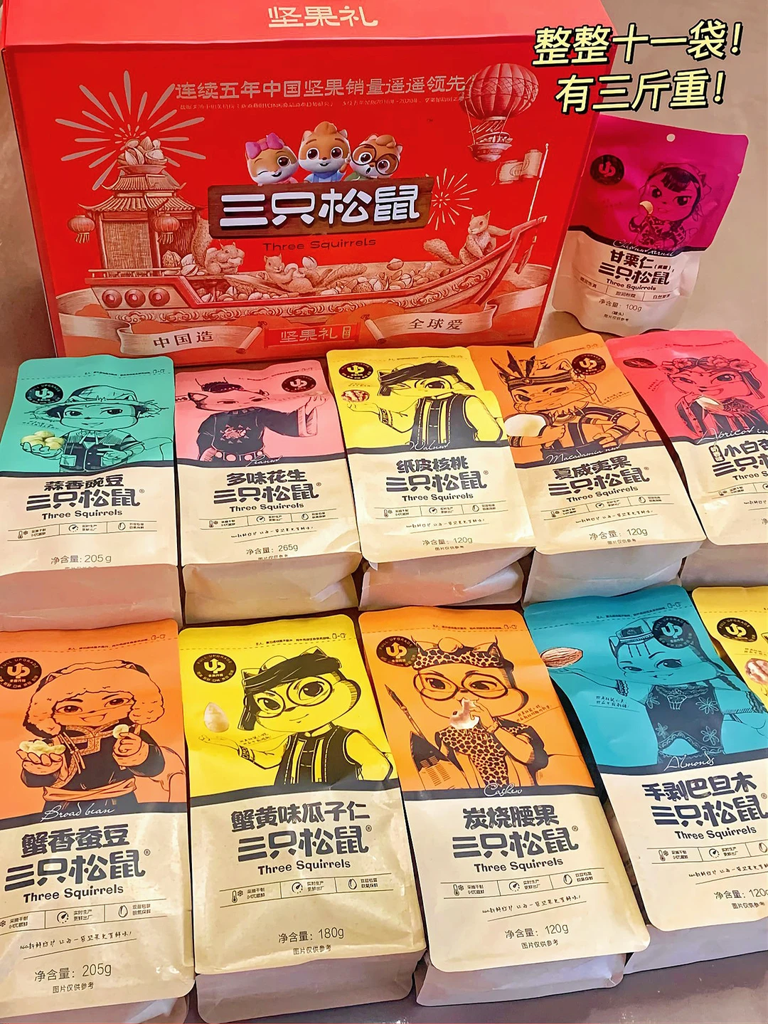 包装红红火火的🔥11袋坚果,足足3斤多!过年送礼倍有面儿!