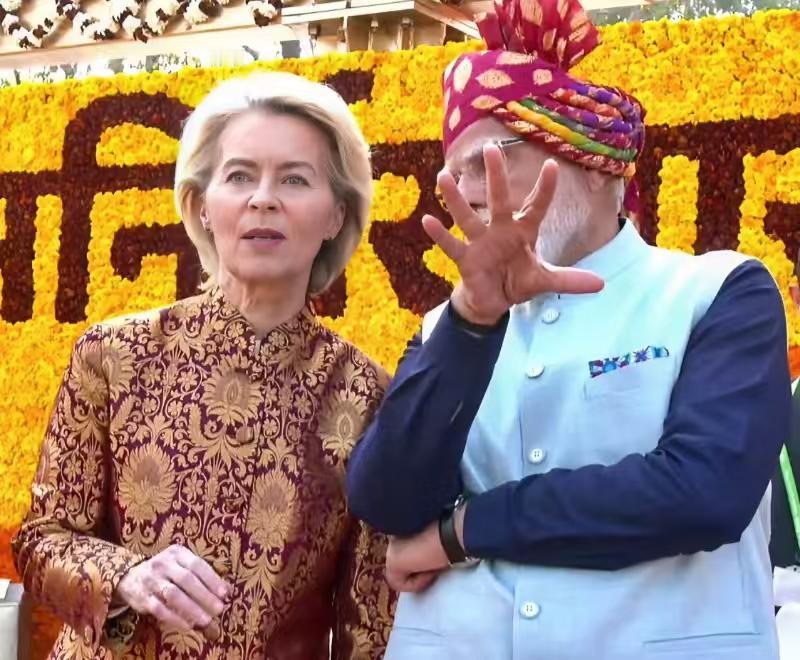 太尴尬了!欧盟主席冯德莱恩被邀请参加印度阅兵式后反而遭到了美国多家媒体的嘲讽。 冯德莱恩这波真的是偷鸡不成蚀把米,丢人丢到国际上了。本来想着去印度撑撑场面,彰显一下自己和欧盟的影响力,结果倒好,不仅没刷到好感,还被美国媒体轮番调侃,连个台阶都没下。 2026年1月26日,印度举办第77个共和国日阅兵式,特意请了冯德莱恩和欧洲理事会主席科斯塔当主宾,这规格在印欧关系里,已经算是很高了。 冯德莱恩也挺上道,为了表示重视,特意穿了印度民族服装,跟着科斯塔一起坐英式礼仪马车进场,全程笑得合不拢嘴,兴致高得不行。 她还在社交平台上发文,说能来当主宾,是她毕生的荣幸,还一个劲夸印度,说成功的印度能让世界更稳定、更繁荣。 谁能想到,满心欢喜想刷波好感,最后却栽在了一个笑容上。当天阅兵,印度首次亮出了动物方队,有双峰骆驼、矮种小马,还有猛禽和本土军犬,场面确实挺特别。 冯德莱恩陪着印度总统穆尔穆检阅这支方队时,没忍住笑了一下,就这一个不经意的表情,被不少人解读成“尴尬又不屑”,说她不尊重印度的阅兵传统,而印度总理莫迪,全程都在检阅台上看着,压根没跟她一起检阅。 这还不算完,更让她难堪的是美国那边的反应。多家美国媒体轮番调侃她,说她是太久没被人重视,这次被印度请去,激动得没边了,急着找存在感。 就连美国财长贝森特,都在达沃斯论坛上直接骂欧盟和印度合作是“愚蠢”的行为。 其实美国这么嘲讽,心里门儿清得很。从2025年开始,欧盟和美国就没少闹矛盾,尤其是特朗普上台后,动不动就给欧盟加关税,两边的贸易谈判谈来谈去也谈不拢。 2025年5月,冯德莱恩更是硬气表态,没谈好贸易协议,她就不去华盛顿见特朗普,可见两边的分歧有多深。 欧盟被美国逼得没办法,只能另找出路,印度人多市场大,就成了他们重点拉拢的对象。 冯德莱恩这趟去印度,可不是单纯看阅兵的,重头戏是签合作协议。1月26日阅兵当天,印欧就签了安全与防务伙伴关系协议和自由贸易协定,转天1月27日开峰会,双方正式宣布,谈了快20年的自贸协定终于谈成了。 按照协议,印度打算把欧盟进口燃油汽车的关税,从最高110%降到40%,但也不是所有车都这样,只针对那些超过1.5万欧元的高端车,还规定每年最多进口25万辆,以后再慢慢降到10%,这对印度来说,已经是最大规模的开放了。 农产品方面,两边互相让步,印度的茶叶、咖啡、香料能以更低关税进欧盟,欧盟的苹果也能进印度,唯独牛奶、小麦这些敏感农产品,两边都不让步,印度更是把这当成了碰不得的“红线”。 欧盟本来是想靠和印度合作,降低供应链风险,少依赖美国,结果被美国媒体批成“病急乱投医”。 《华尔街日报》和CNBC都评论,说欧盟这么急着讨好印度,不光未必能打开新市场,还可能惹特朗普不高兴。 更何况,印度和俄罗斯关系一直很近,美国媒体直言,欧盟这是引火烧身,万一以后印度和俄罗斯联手,欧盟只会得不偿失。 其实冯德莱恩这么急切,还有个藏着的心思——她自己在欧盟内部快坐不稳了。 2026年1月16日,欧洲议会说要在1月22日,就针对欧盟委员会的不信任动议投票,这已经不是第一次有人要赶她走了。 这次是质疑她没听民众意见,没能解决欧盟的难题,还损害了欧洲农民的利益,要是投票通过,整个欧盟委员会都得辞职,她的位置也保不住。 她本来想借着印度之行,向欧洲内部证明自己还有影响力,结果偷鸡不成蚀把米,反倒被嘲讽、被质疑,陷入了内外两难的境地。到现在,冯德莱恩和欧盟都没回应这些争议。 说来说去,冯德莱恩的想法挺好,想靠印度摆脱美国,还能保住自己的位置,可现实太打脸。印度的合作有诸多限制,想靠它抗衡美国根本不现实,美国又步步紧逼,内部还有压力,冯德莱恩接下来该怎么破局,真的是个大难题。 说到底,国际外交就是这么现实,没有永远的朋友,只有永远的利益,欧盟想靠讨好印度摆脱困境,难,冯德莱恩想保住位置,更难。