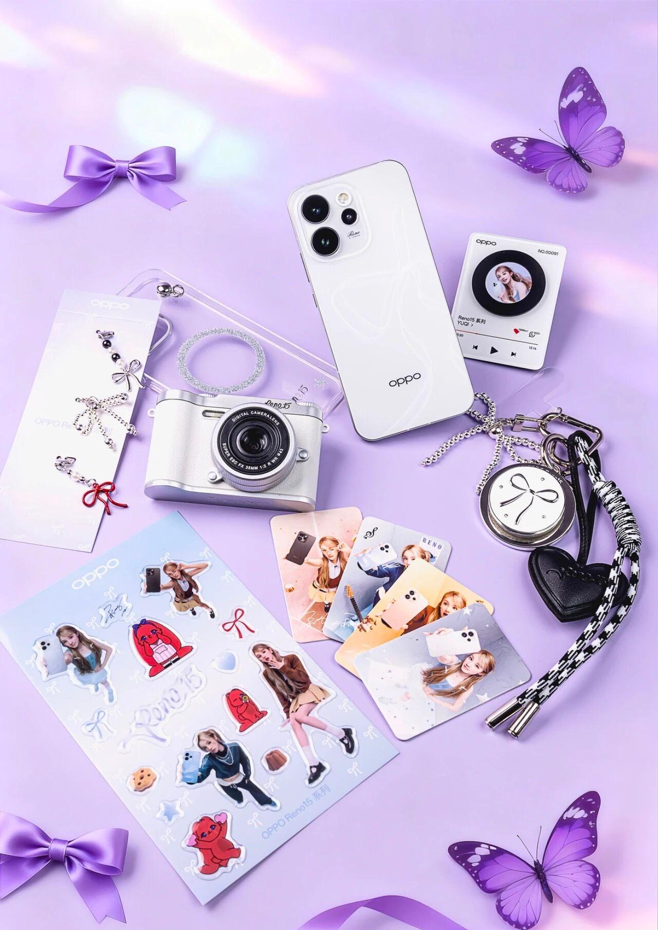 我拍到了Reno15宋雨琦礼盒版!打开宋雨琦礼盒瞬间满屏都是星光蝴蝶结的甜!OPPO Reno15宋雨琦礼盒太戳少女心啦!Reno15星光蝴蝶结配色机身超亮眼,冰透玻璃上的裸眼3D蝴蝶结清透又灵动,像把星光揉进了壳子里。 周围的礼盒配件直接把“甜”拉满:透明手机壳挂着蝴蝶结挂饰,闪着细钻的圆环握在手里像拎了个小甜筒;银色迷你相机摆件奶fufu的,和宋雨琦的限定小卡、贴纸堆在一起,每一张都带着蝴蝶结元素;还有印着蝴蝶结的圆形挂饰、黑白编织挂绳,连小配件都裹着浪漫细节,整个画面像把少女心的甜意都装进来啦~