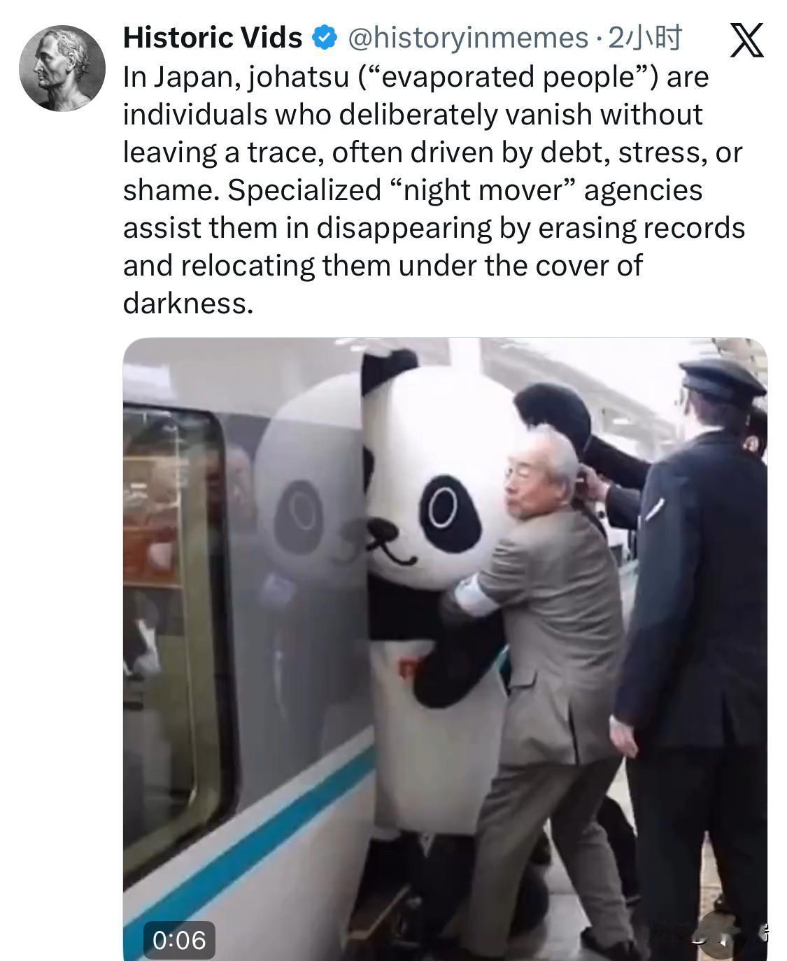 在日本,“蒸发”(johatsu)指的是那些故意消失而不留下任何痕迹的人,他们往往是因为债务、压力或羞耻感而被迫消失。专门的“夜间搬家”机构会帮助他们抹去记录,并在夜幕掩护下转移他们的住处,从而帮助他们彻底消失。 这是一个令人深思且略带忧郁的话题。这种被称为“蒸发”(Johatsu/蒸発)的社会现象,背后折射出日本文化中深层的心理和社会压力。 简单来说,这是一种极端的“断舍离”: 社会根源: 许多人因为无法承受巨大的债务、失业、离婚或考试失败带来的“耻感”(Shame)。在日本社会,公开承认失败往往意味着失去了社会尊严,因此“人间蒸发”成了他们保全颜面、寻求重生的最后手段 。 助推者: 你提到的“夜间搬家”(Yonige-ya/夜逃げ屋)公司,服务细致到极致——他们会配合客户在凌晨悄悄搬走所有行李,甚至提供假名代签和新的定居建议 。 隐私屏障: 日本极度保护个人隐私的法律(如《个人信息保护法》)客观上成为了这些人的“盾牌”。除非涉及刑事犯罪,警察通常不会介入寻找成年失踪者,民间机构也极难通过行政手段查到搬迁记录 。 这种现象不仅是个人生活的逃避,更被视为一种“无形的自杀”。