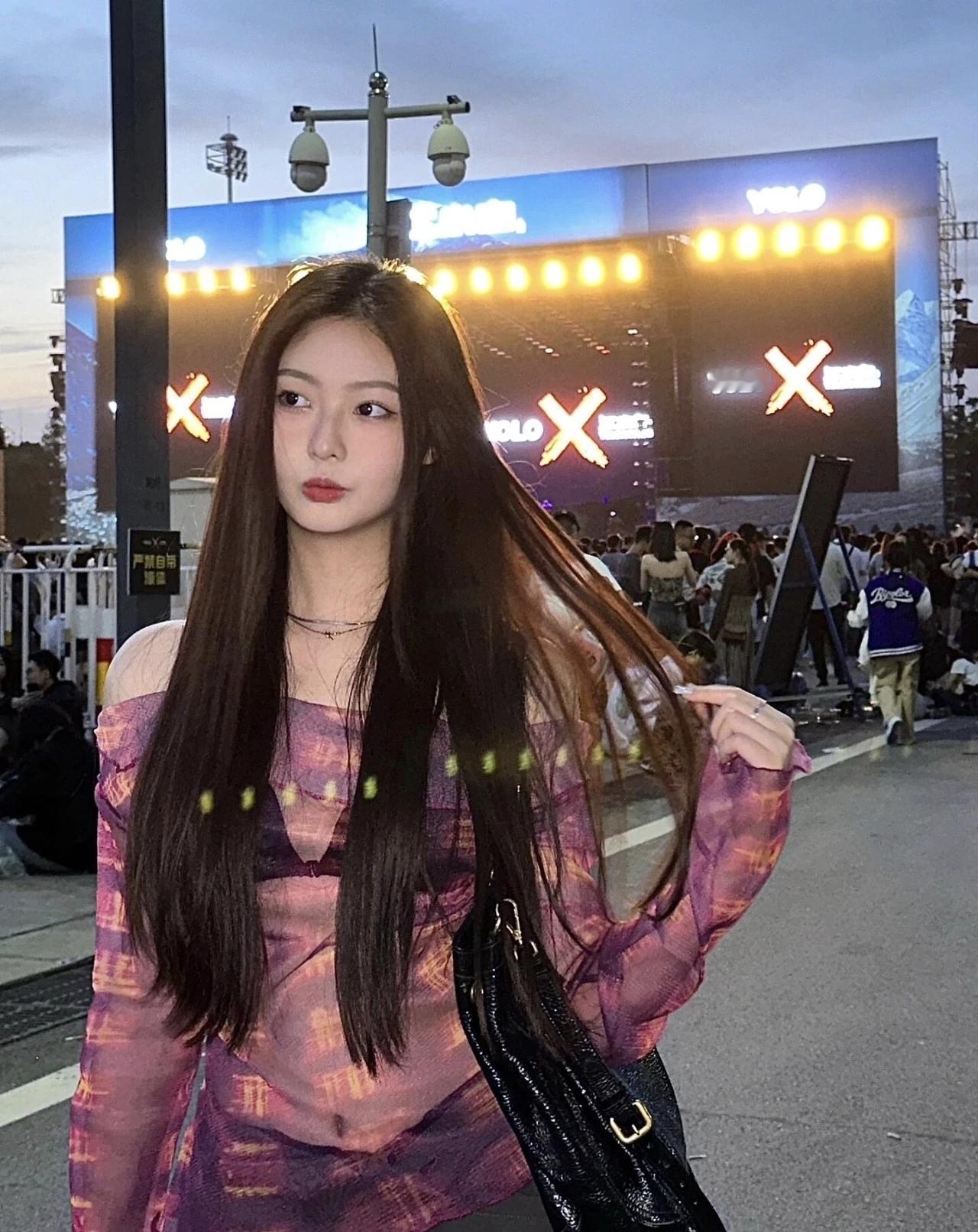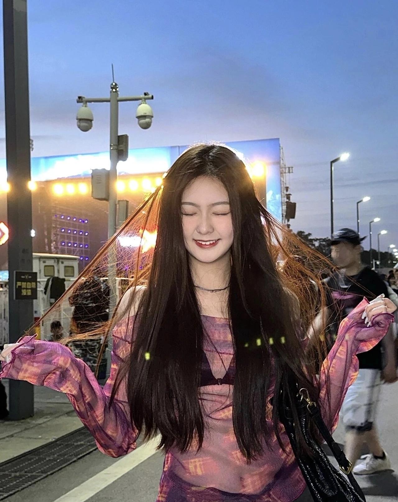 夜晚街头自拍,粉嫩上衣,元气满满!🌟✨