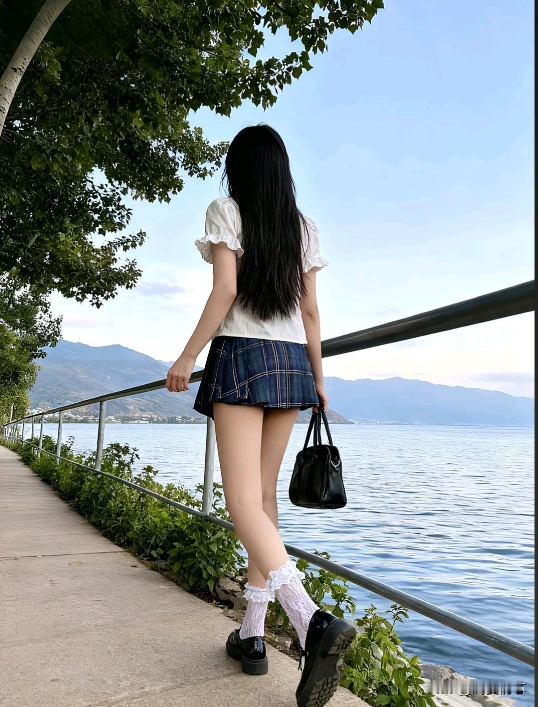 森林中的清新少女,白色上衣与灰色牛仔裤的完美搭配,自然与时尚的完美融合。