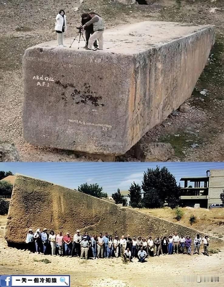 图片显示的是黎巴嫩巴勒贝克(Baalbek)采石场著名的“孕妇石”(Stone of the Pregnant Woman)及附近其他巨石。这些巨大的石块是人类历史上开采过的最大人造石块之一。 巨石详情 地点: 黎巴嫩贝卡谷地(Bekaa Valley)的巴勒贝克采石场。 年代: 普遍认为可以追溯到罗马时期,约公元1世纪左右,当时巴勒贝克被称为赫利奥波利斯(Heliopolis,意为“太阳城”)。 尺寸与重量: 孕妇石:长约 20.7 米(68 英尺),宽约 4.3 米(14 英尺),高约 4.3 米(14 英尺),重约 1,000 吨。 “被遗忘的石头”(或称第三块巨石):2014 年在附近发现,估计重达约 1,650 吨,是已知人类开采过的最大石块。 用途: 这些巨石很可能原本打算用于建造附近的朱庇特神庙(Temple of Jupiter)的巨大地基,特别是构成“三石阵”(Trilithon)的扩建部分,该地基中的三块石头每块重约 750-800 吨。 采石场内的巨石从未被完全分离或运输到神庙建筑群,可能是因为尺寸太大或石材有缺陷。k 现代工程师对古代人如何在没有现代机械的情况下切割、运输和精确放置如此巨大的石块感到困惑,其确切方法仍然是考古学界的持续争论和谜团。
