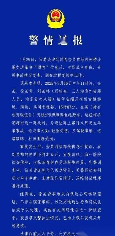 “我来开的。” 就这四个字,从助理嘴里对着警察说出来的时候,这事儿的性质就全变了。 比车祸本身,可刺激多了。 金晨脸上挂了彩,慌着去医院,行,我能理解,毕竟是演员,脸就是饭碗。 人嘛,遇到事儿第一反应都是保住自己最重要的东西。 但留下个人在现场,帮你跟警察撒谎顶包,这操作是什么路数? 咱们普通人,谁敢这么玩儿?出了事,第一反应就是老老实实站那儿,等交警来,一个字都不敢瞎说。 可人家呢?“你顶着,我先走”。 这感觉太差了。一下子就把“特权”两个字,明晃晃地贴在了脑门上。 后来通报出来了,说不是为了骗保。她自己也掏钱,早早把所有损失都赔干净了。 这就更有意思了。 既然不图钱,那到底图什么? 我琢磨了半天,可能就图个“省事”,一种根深蒂固的“内部消化”思维。 总觉得,钱能摆平一切。车我赔了,人我安抚了,这事儿不就翻篇了吗? 他们忘了最重要的一点: 警察叔叔介入的那一刻,这事儿就不是你家后院那点民事纠纷了。这是公共事件。你以为在玩“私了”的游戏,其实你已经站在了公共规则的考场上。 用钱,是擦不掉笔录上那个谎言的。 所以你看,大家真正生气的,压根就不是一场意外,也不是一个慌乱中跑去医院的女明星。 我们反感的,是那种“我们圈子的事,就用我们圈子的办法解决”的潜在逻辑。 这一通折腾下来,最后证明了啥? 证明最开始大大方方承认“对,车是我开的,但我脸受伤了得马上去医院,这是我助理联系方式,我随时配合”,可能屁事没有。 一场教科书级别的、由侥幸和傲慢联袂主演的公关灾难。 有时候,最聪明的办法,恰恰就是那个最笨、最诚实的办法。
