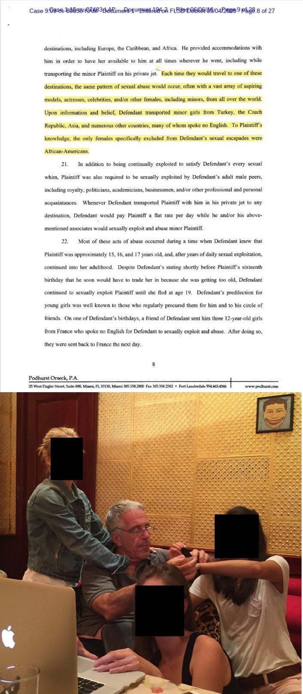 🚨这些指控2016年的一份法庭文件(简·多伊诉美国案,文件编号361-30)指控爱泼斯坦从包括土耳其和捷克共和国在内的多个国家运送未成年少女,并描述了在国外招募的非英语受害者。虽然这一指控尚未得到证实,但它已列入官方法庭记录,并且与后来有关国际招募的证据相吻合。