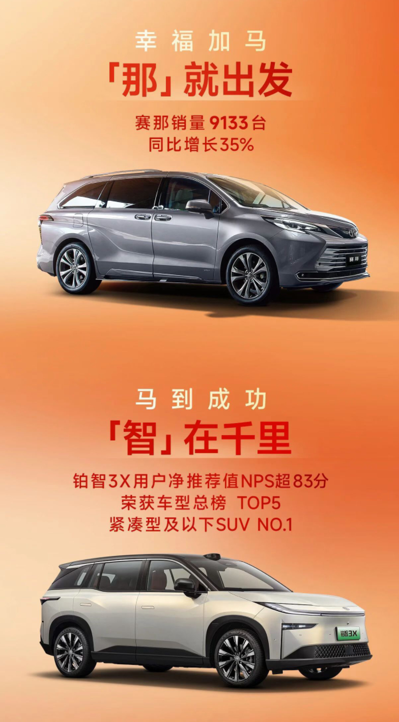 2026的开门红正增长,太不容易了,整个行业哀鸿遍野,但是广汽丰田,依然坚挺持久!铁打的凯美瑞,神奇的赛那,还有铂智7。1月份,广汽丰田共售出63648辆,其中凯美瑞销量达17426辆,同比增长高达17%;赛那销量为9133辆,同比增幅更是达到35%。实现同比正增长。3月份,广丰的旗舰纯电车型铂智7即将霹雳登场,又是一个不眠之夜。百家车坛