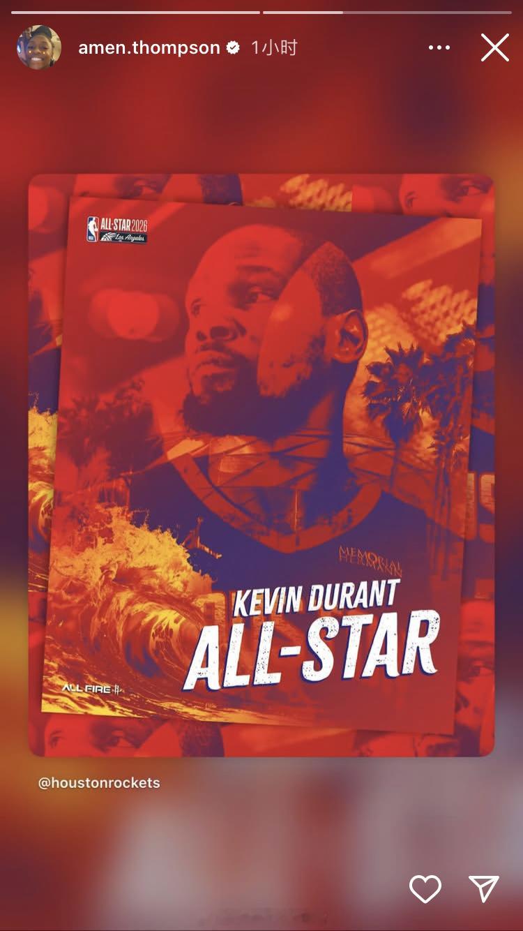 戴维森、阿门、谢泼德ins转发杜兰特入选全明星