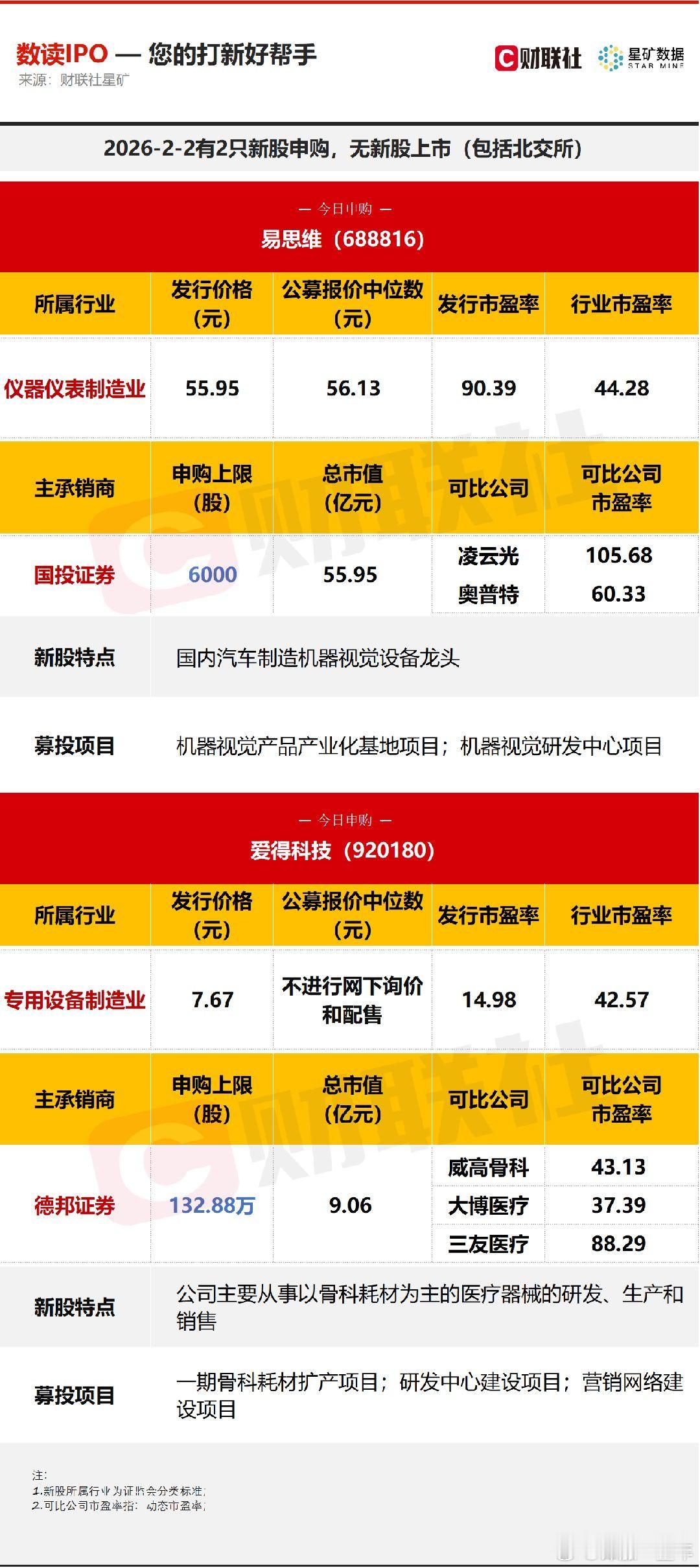 A股今日有2只新股申购,分别为科创板的易思维,北交所的爱得科技;无新股上市。