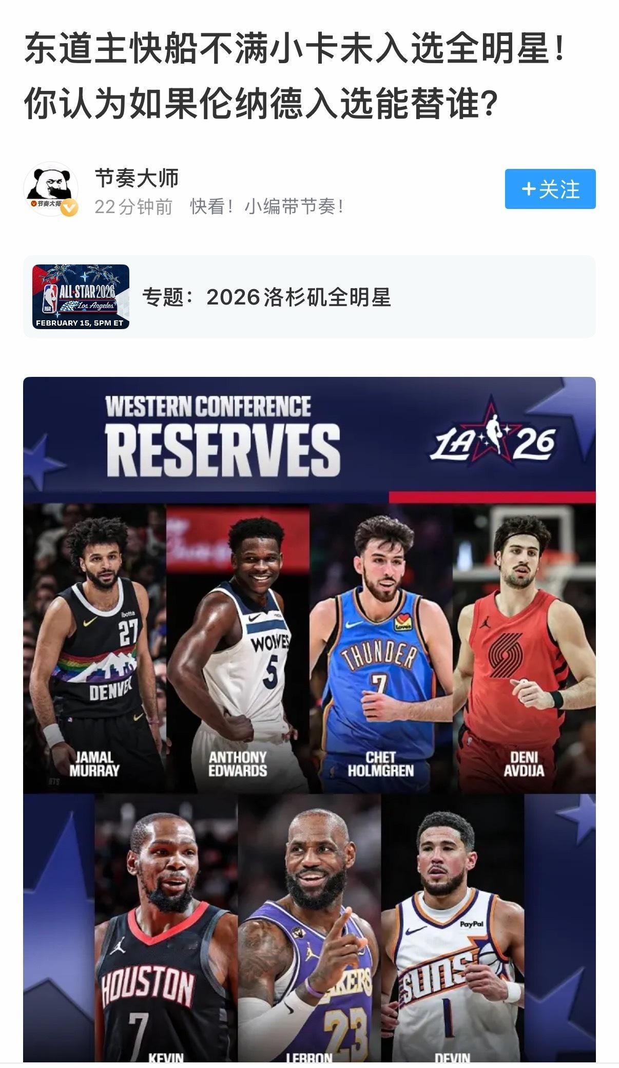 #詹姆斯入选2026NBA全明星#2026年NBA全明星替补阵容公布,詹姆斯