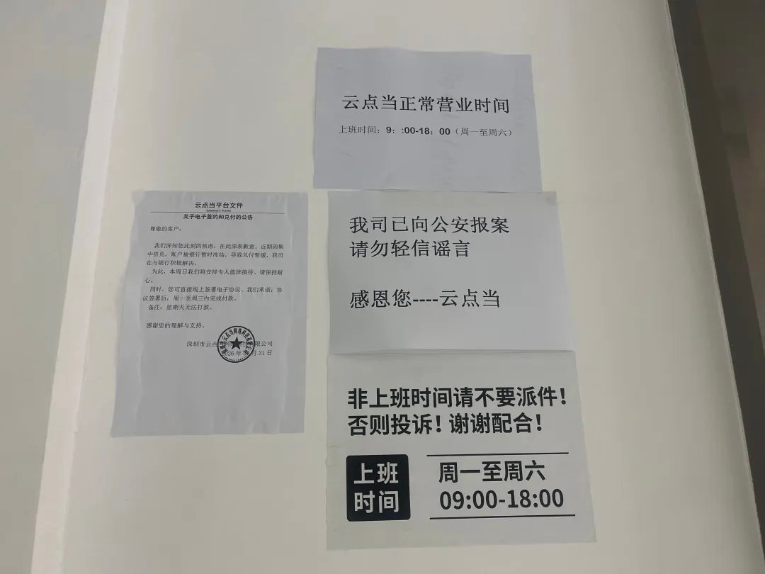 云点当在一份2026年1月31日的公告中表示,“近期,受行业个别平台风险事件波及,导致我司资金流动性出现一定的挤兑。我司对某两家公司的相关款项,目前回收困难。尽管短期内回收希望渺茫,但我们已将该债权情况向政府相关部门完成报备,并保留一切法律追索权利。”