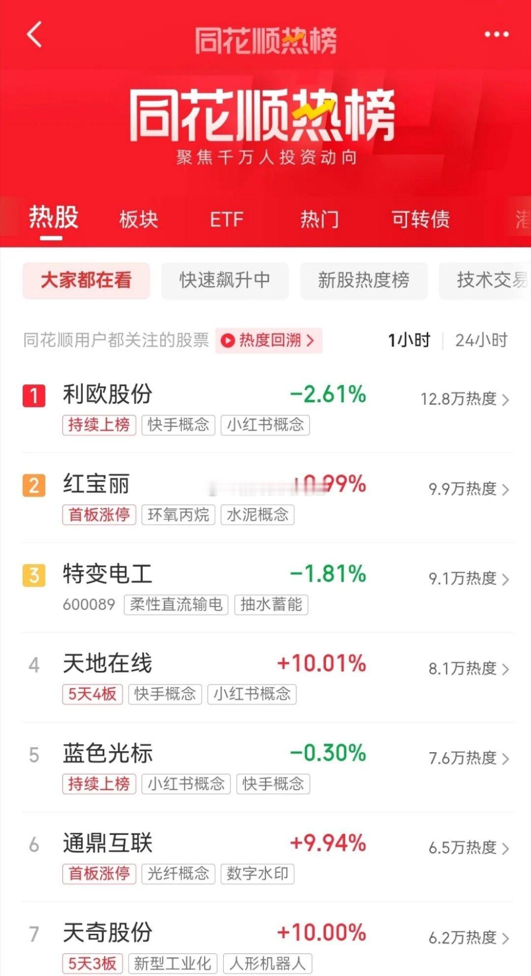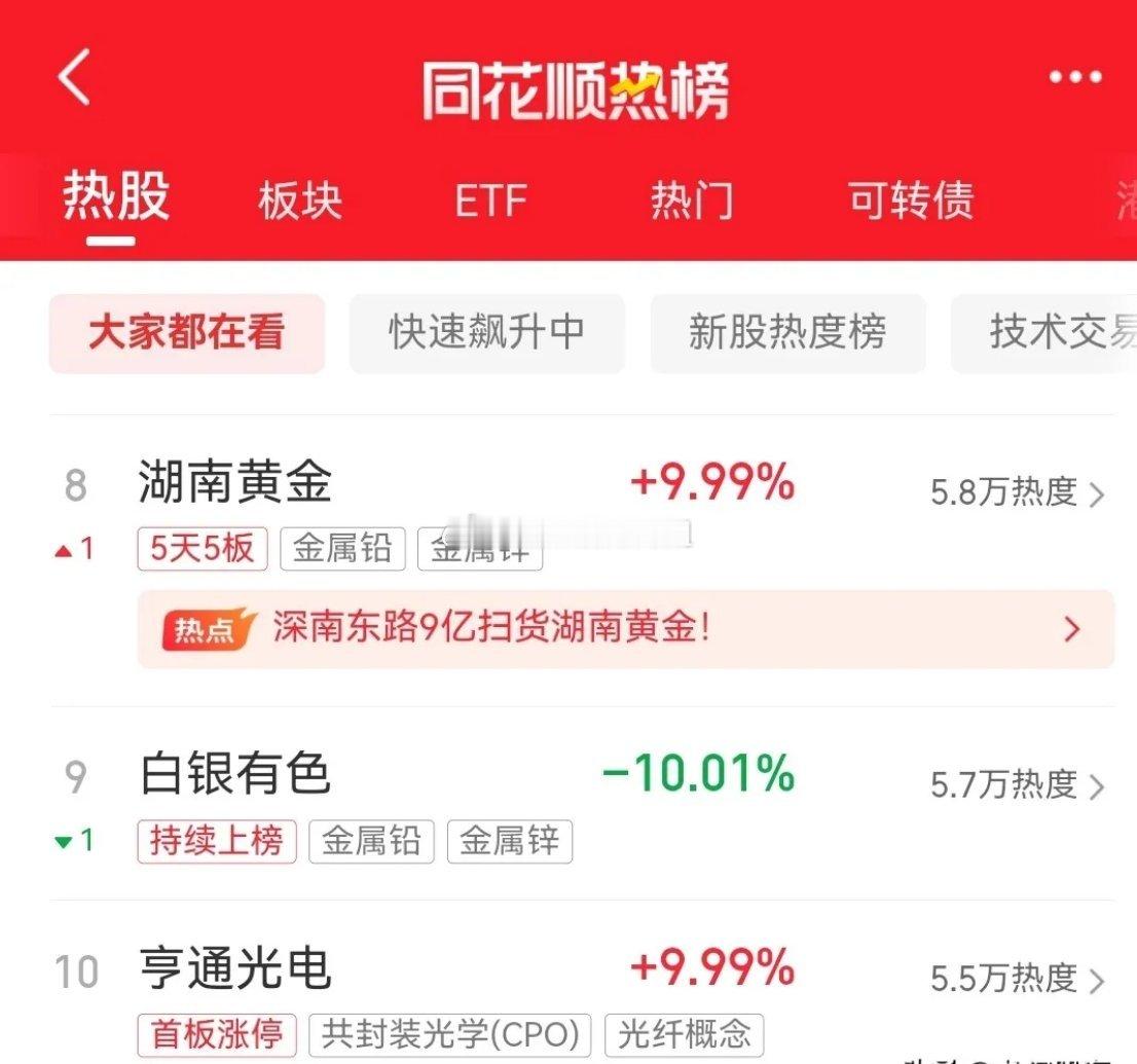 即将开盘,目前同花顺热榜最新排行前十名如下: