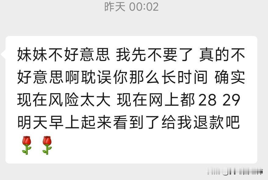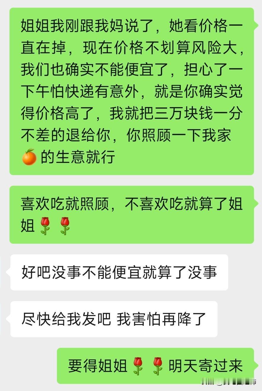为自己愚蠢的善良买单 最近一个月关注白银,今年1月中旬购入1kg白银,1.30正处于最后的价格巅峰,在本平台发帖卖30.8克价,很快一个姐姐找到我说她收了,然后我们顺利的加了vx,然后还互看了身份证件,于是她全款发给我,我承诺第二天(1.31)就发货,1.31日凌晨她说白银在猛跌他不要了,让我退款给她,同时说自己是全职宝妈,小宝俩个月大短时间没有钱花了,我就傻呵呵的全额退了,我知道价格在降,当时不知道这种算跑单行为,看见跌了也给全额退了,然后我于1.31日12点左右把钱全额退给她。一把辛酸泪,1.31晚上才了解需要退定金,当晚联系了姐姐能不能退还部分(此时我已全额全款给她),2.1日也就是今天,她以老公发现为由已经转走了她的所有钱,然后退还我7块结束,然后发了一段话,删掉了我 因为是全款没有定金,第一次经历这种交易,我也不知道真正的市场交易怎样,我发这个只是记录感慨一下,不知道是为自己的善良买单,还是为自己的愚蠢买单。