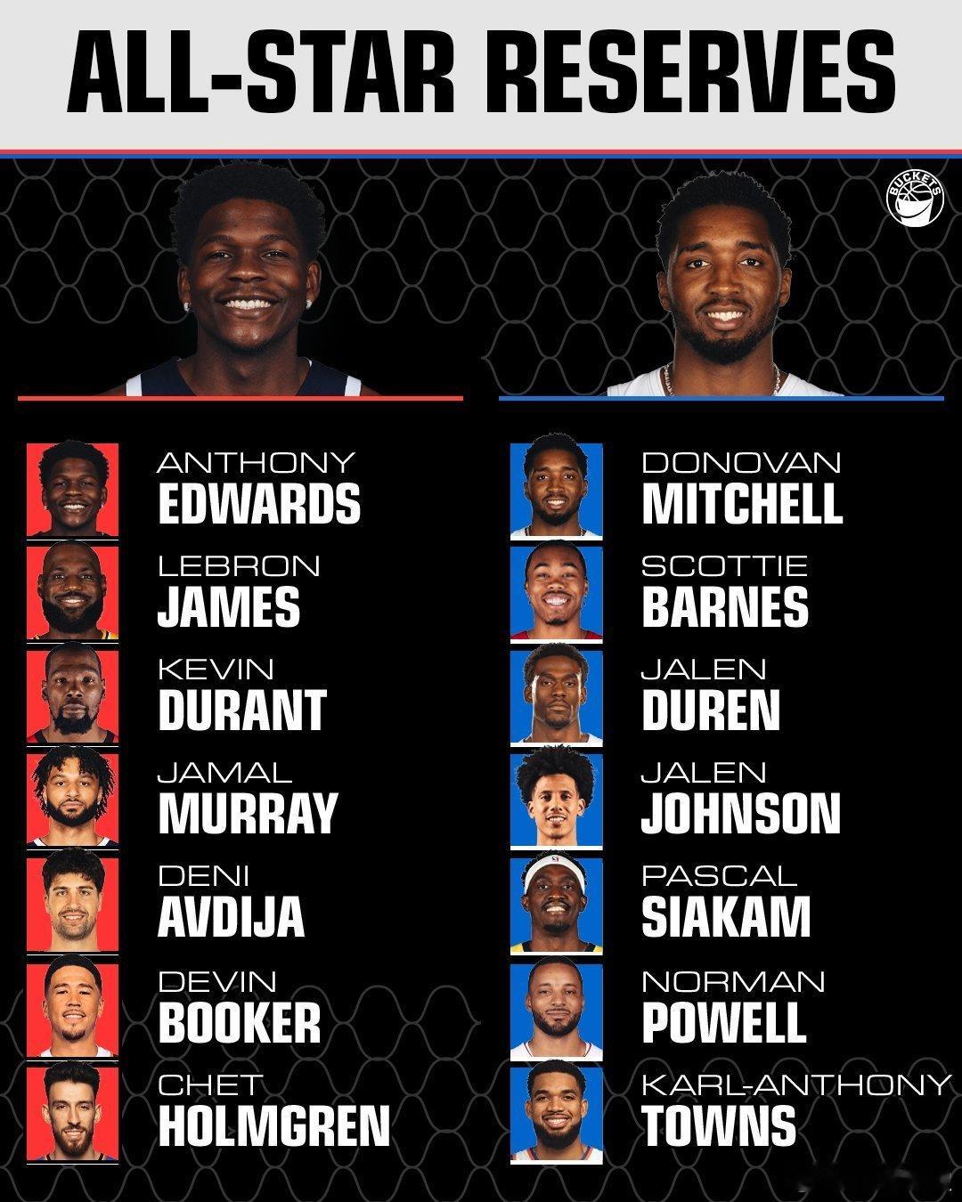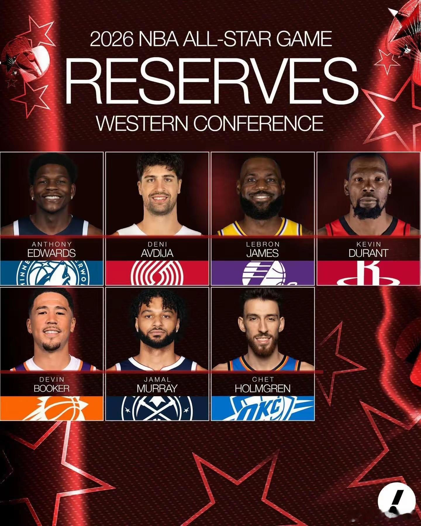 ——西部:爱德华兹、霍姆格伦、贾马尔-穆雷、布克、阿夫迪亚、杜兰特、詹姆斯