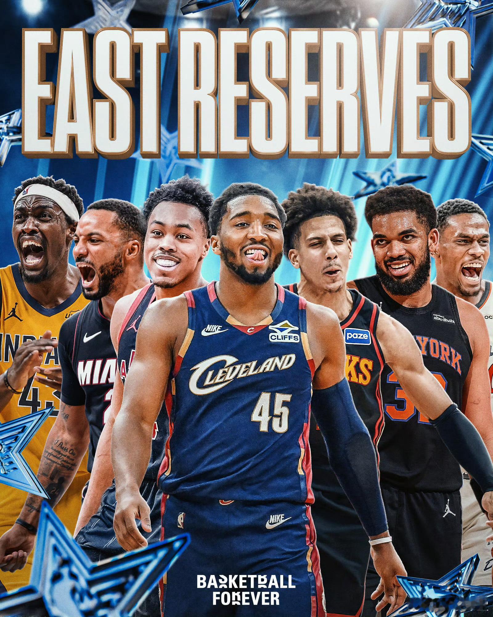 ——东部:米切尔、唐斯、杰伦-约翰逊、西亚卡姆、鲍威尔、斯科蒂-巴恩斯、杜伦