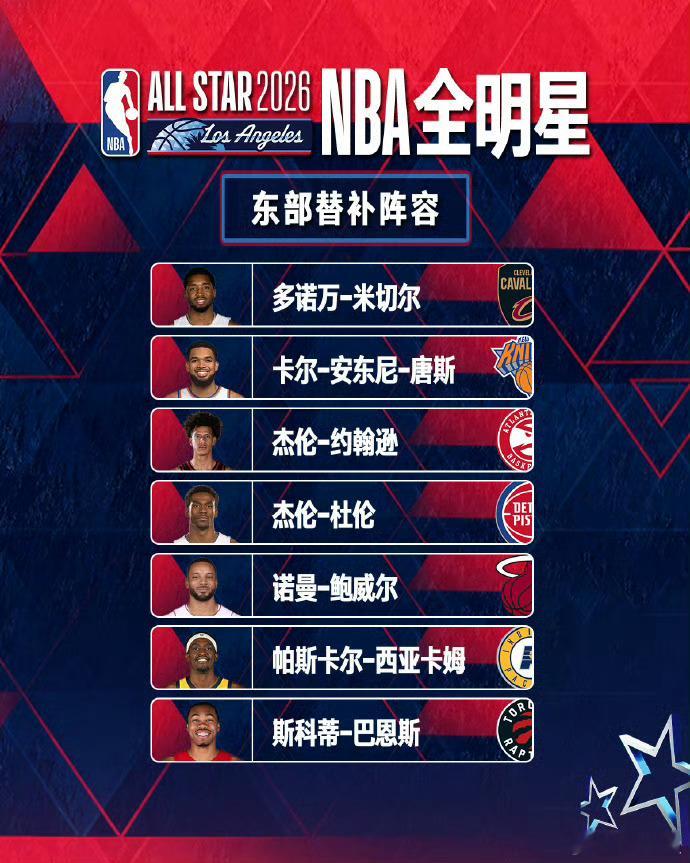2026NBA全明星阵容2026年NBA全明星替补阵容出炉NBA全明星