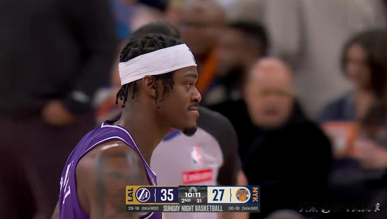 他在场的时间,湖人赢了11分球,就是正负值+11,虽然得分不是他得的。
