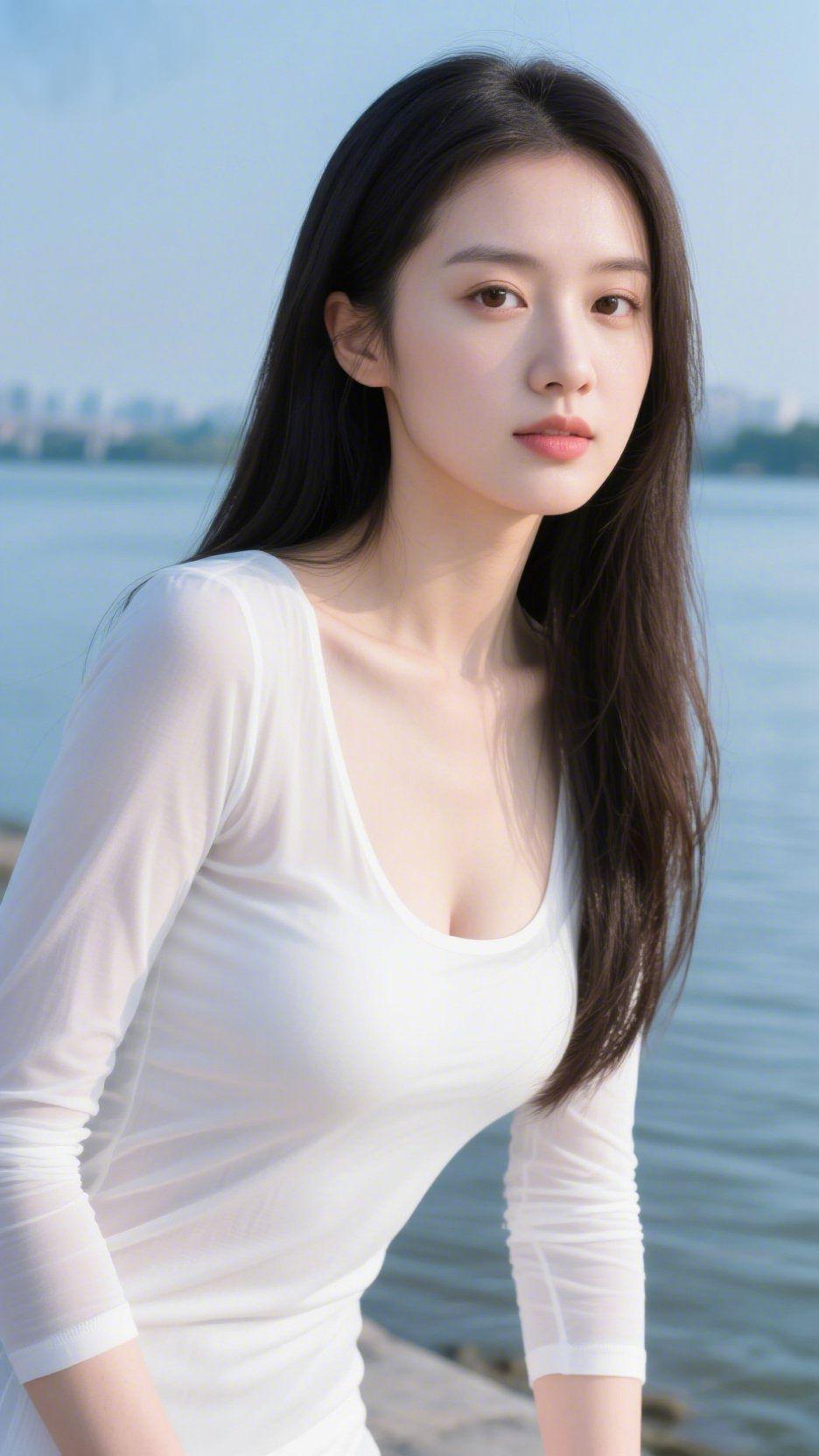 《白衣浸满湖岸清光》 湖风掠过岸沿时,她立在水色旁,一身白衣似轻展的云,浸在淡蓝的天光里。 这白裹着水汽的柔,衣料舒展垂落,肩颈自在如春日枝桠;长发随微风轻扬,发梢轻扫肩头的弧度,与湖面波纹融作一团温软。唇间浅粉如岸边沾露的花,落在眼底便成了安静的暖意。 好看从不是刻意的模样,不过是一身合心的衣,裹住日常的舒展,把湖风里的轻软,酿成眼底的柔光。 白衣清柔穿搭 湖岸松弛氛围