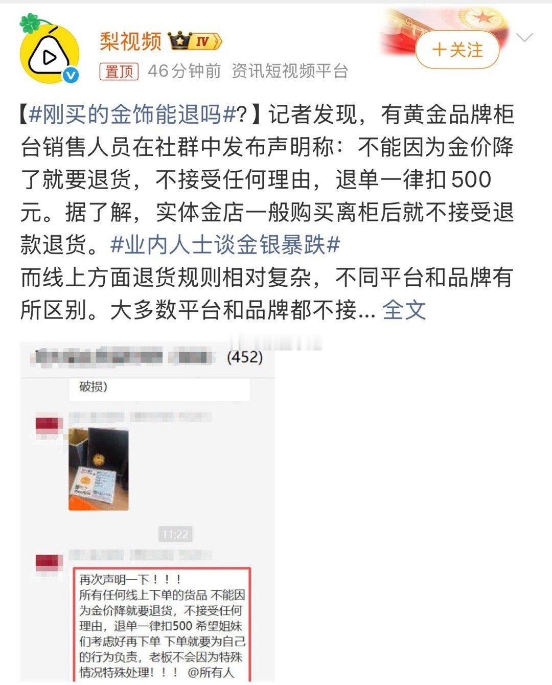 这世上哪有这么好的事情,总要有点契约精神,买了就认,而且金饰又不是投资,都是饰品,美美的带着就好了啊!