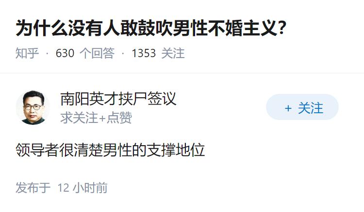 为什么没有人敢鼓吹男性不婚主义? -----------------------