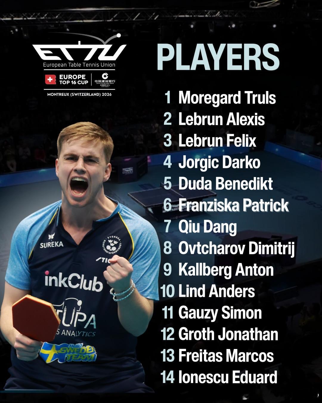 ETTU欧洲16强杯倒计时海报已进入正赛签表的球员🏓