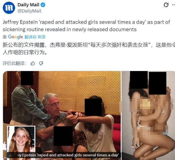 《每日邮报》:爱泼斯坦每天都会多次强奸未成年女孩! 美国司法部2026年1月30号一公布最新调查文件,好家伙,300多万页,还有2000多段视频、18万张图片,全是实打实的调查记录、受害者证词和现场物证。 爱泼斯坦是谁,简单说,就是美国一个亿万富翁,平时天天跟政要、富豪称兄道弟,装得人模狗样,背地里干的全是伤天害理的破事。 他把侵犯未成年女孩当成了每天的必修课,安排得能比上班还规律。 2026年司法部的文件里写得明明白白,他每天都让助理或者专门的人,去把未成年女孩带到他的豪宅或者私人岛屿上。 这些姑娘大多才13到17岁,都是底层的弱势群体,有的被“模特签约”“高薪兼职”的谎话骗来,有的是被胁迫来的,只要敢反抗,迎接她们的就是威胁和报复。 文件里有好几个受害者的证词,有人说自己被他囚禁了好几个月,每天都要遭受好几次侵犯,哭着求饶也没用。 他还会捆绑、殴打这些女孩,甚至录像、拍照,用来威胁她们不许把事情说出去。 更让人恶心的是,他还有个外界叫“黑皮书”的通讯录,上面记着每个女孩的名字、年龄和联系方式,跟咱们记工作台账似的,冷血得没一点人情味。 文件里还写着,他一天最多能安排4到6个女孩,每个人待30到60分钟,把这些小姑娘当成发泄欲望的工具,半点不把人当人看。 其实早在2019年,他就因为性侵、拐卖未成年女孩被抓了,联邦调查局在他豪宅里搜出一大堆淫秽照片,受害者有几十人,最小的才14岁。可谁能想到,2019年8月9号晚上,他在纽约曼哈顿的监狱里自杀了。 之前他还试过一次自杀没成,监狱特意加强了监视,结果自杀前一天,监视居然被取消了。 虽说这事疑点一堆,但2025年7月,美国司法部和联邦调查局已经有了结论,说他就是自杀,也没有什么所谓的“客户名单”,不会再公布更多相关文件了。 最让人愤怒的不是他一个人坏,是他背后那群欧美顶层人士。平时在电视上喊着“自由民主人权”,装得个个体面,背地里好多都是他那“萝莉岛”的常客。 2026年的文件里就提到了英国安德鲁王子,有照片还有邮件记录,2010年9月,他还邀请爱泼斯坦去白金汉宫,那时候爱泼斯坦教唆14岁女孩性交易已经定罪两年了。 2025年4月,起诉安德鲁王子的受害者弗吉尼娅·朱弗雷自杀了,到了10月,英国国王查尔斯三世直接把安德鲁王子的尊号、头衔全剥了,还让他搬离王室住所。英国首相斯塔默被问起这事,也说掌握信息的人该出来作证。 还有美国商务部长卢特尼克,之前嘴硬说几十年前就跟爱泼斯坦断了联系,还骂爱泼斯坦令人作呕,结果文件里的邮件显示,2012年12月,他带着老婆去了爱泼斯坦的私人岛屿。 美国商务部出来圆场,说他俩接触有限,没被指控不当行为,这话谁信啊。 特斯拉创始人马斯克的名字也在文件里,2012到2013年的邮件里,提到他跟爱泼斯坦讨论过去私人岛屿的事,但目前没有确切证据说他真的去了。 马斯克后来在社交平台回应,说自己很少跟爱泼斯坦通信,也多次拒绝了邀请,怕邮件被曲解毁了自己名声。 可让人看不懂的是,司法部这次公布文件,看着透明,实则一肚子猫腻。 这次公布的是最后一批文件,超过300万页,加上之前的,一共约350万页,好多内容被涂黑,还有的干脆不公开。 司法部副部长说没公开的太敏感,比如受害者信息、医疗档案这些,可美国众议院议员根本不买账,质疑他们故意藏文件,庇护权贵。民主党和共和党议员还一起写信,说文件里好多受害者姓名没保护,直接泄露了。 受害者的律师也说,司法部说公布文件是给受害者慰藉,纯属扯谈,泄露姓名只会再伤害她们。 大家都怀疑,爱泼斯坦能长期作恶、逃脱制裁,就是因为有这些权贵当保护伞。 到2026年2月,虽说文件证实了他的恶行,可好多疑问还没解开,那些跟他有牵扯的权贵,没一个被追责的。 那些受害的小姑娘,正是最好的年纪,却遭遇了这样的伤害,好多人一辈子活在阴影里,有的得抑郁症,有的甚至自杀了。司法部公布文件,算是迟来的正义,可这份正义,来得太晚了。 爱泼斯坦死了,可他背后的权贵圈子还在,所谓的自由民主,不过是他们掩盖恶行的遮羞布,希望有一天,所有涉案的人都能被揪出来受罚。