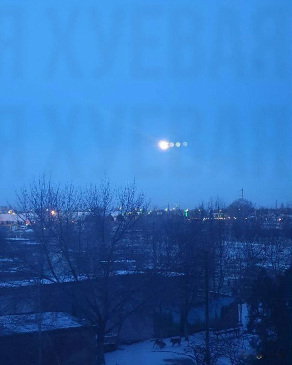 【战时幻月何人赏】2月1日夜,敖德萨夜空同现四轮明月,系晕轮效应衍生的幻月(假月亮),由月光经高空冰晶特殊折射形成。