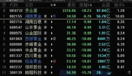 今日A股跌幅榜被资源股包揽,黄金白银板块近乎全线跌停,有色金属板块重挫,这一盘面走势与此前商业航天、AI应用的退潮行情如出一辙。跌停标的均封死大单一字板,资金出逃坚决,散户几乎没有离场机会。