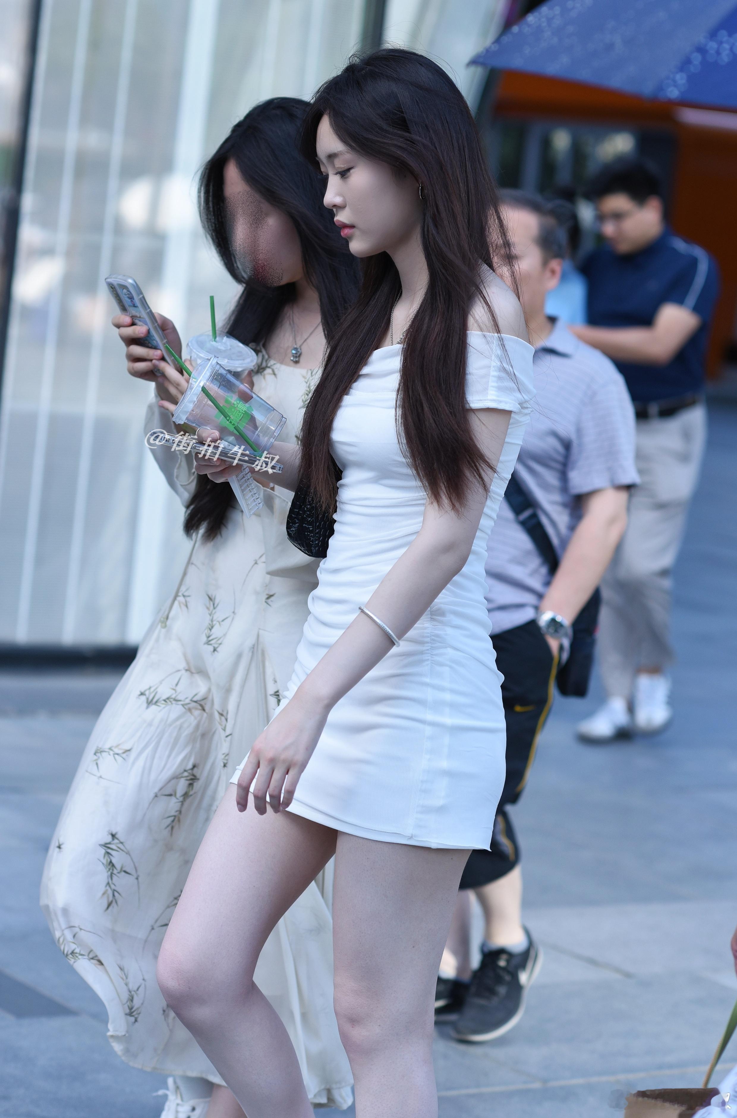 漂亮气质的一字肩白色连衣裙