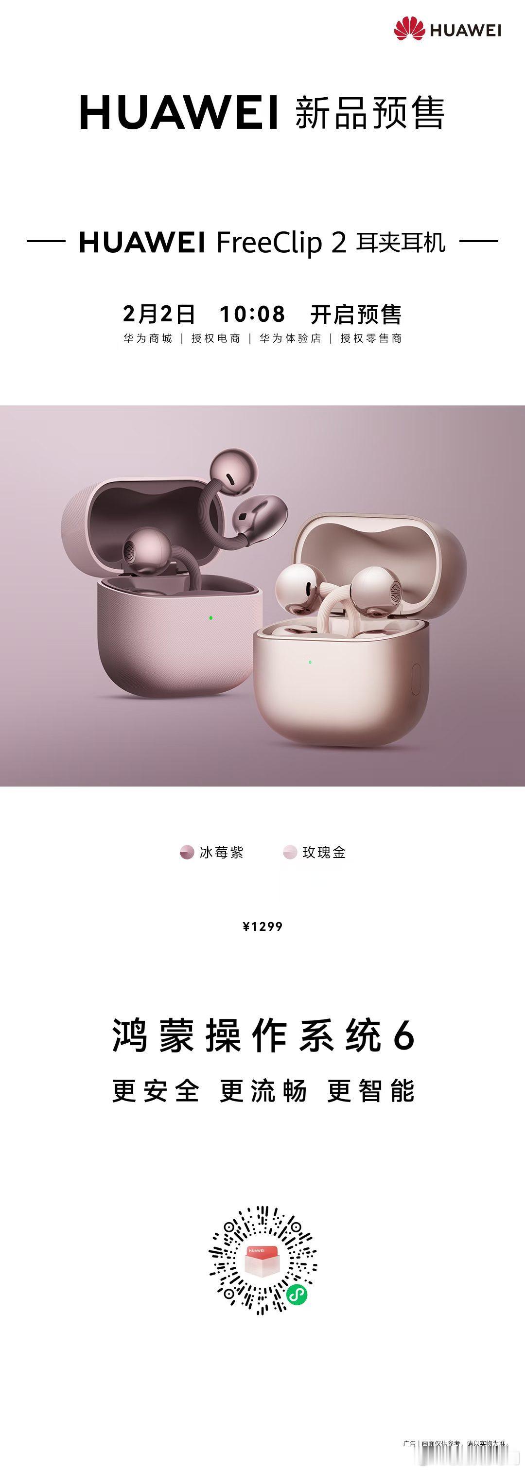华子的 FreeClip 2 耳夹耳机出新颜色了,冰莓紫和玫瑰金都挺好看的,太心水了哇!!鸿蒙越用越香我的鸿蒙体验华为鸿蒙6